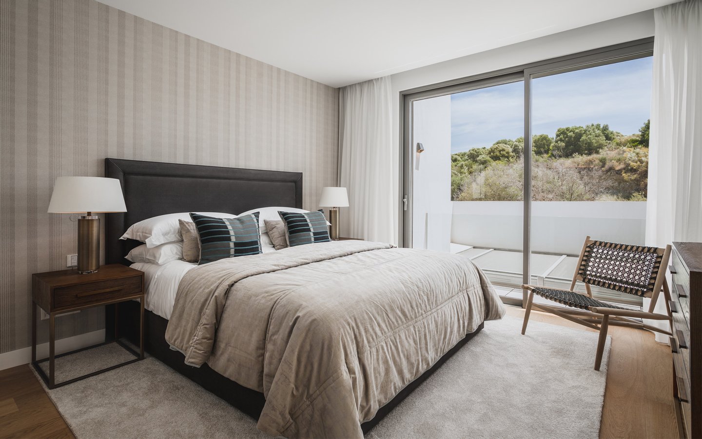 Das Obergeschoss erweitert den Luxus mit zusätzlichen Schlafzimmern, die jeweils über ein eigenes Bad und einen direkten Zugang zu einer Terrasse verfügen.