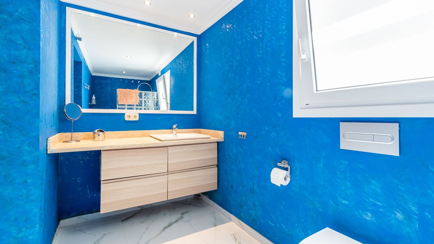 Klimaanlage, Küche ausgestattet, Marmorböden, Jacuzzi, Gästezimmer, Solarium, Wohnzimmer, Grill, Private Terrasse, Wohnzimmer, Meerblick, Bergsicht, Dolby Stereo Surround-System, Waschküche, Überdachte Terrasse, Einbauschränke, Blick auf Garten, Blick aufs Schwimmbad, Fussbodenheizung (Badezimmer), Offene Terrasse, Glastüren, Offene Küche, Gästewohnung, Haustiere erlaubt