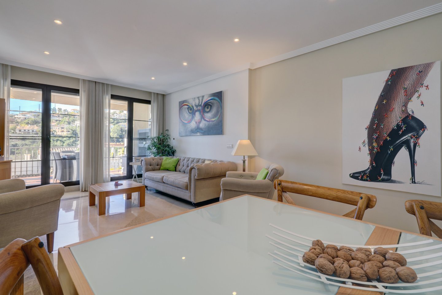 Bestehend aus einem geräumigen Wohn- und Essbereich, einer voll ausgestatteten Küche, einem luxuriösen Hauptschlafzimmer mit eigenem Bad und zwei Gästezimmern, die sich ein weiteres Badezimmer teilen, verfügt diese Wohnung über direkten Zugang zu zwei Terrassen ? eine vom Wohnbereich aus erreichbar und eine weitere vom Hauptschlafzimmer aus.