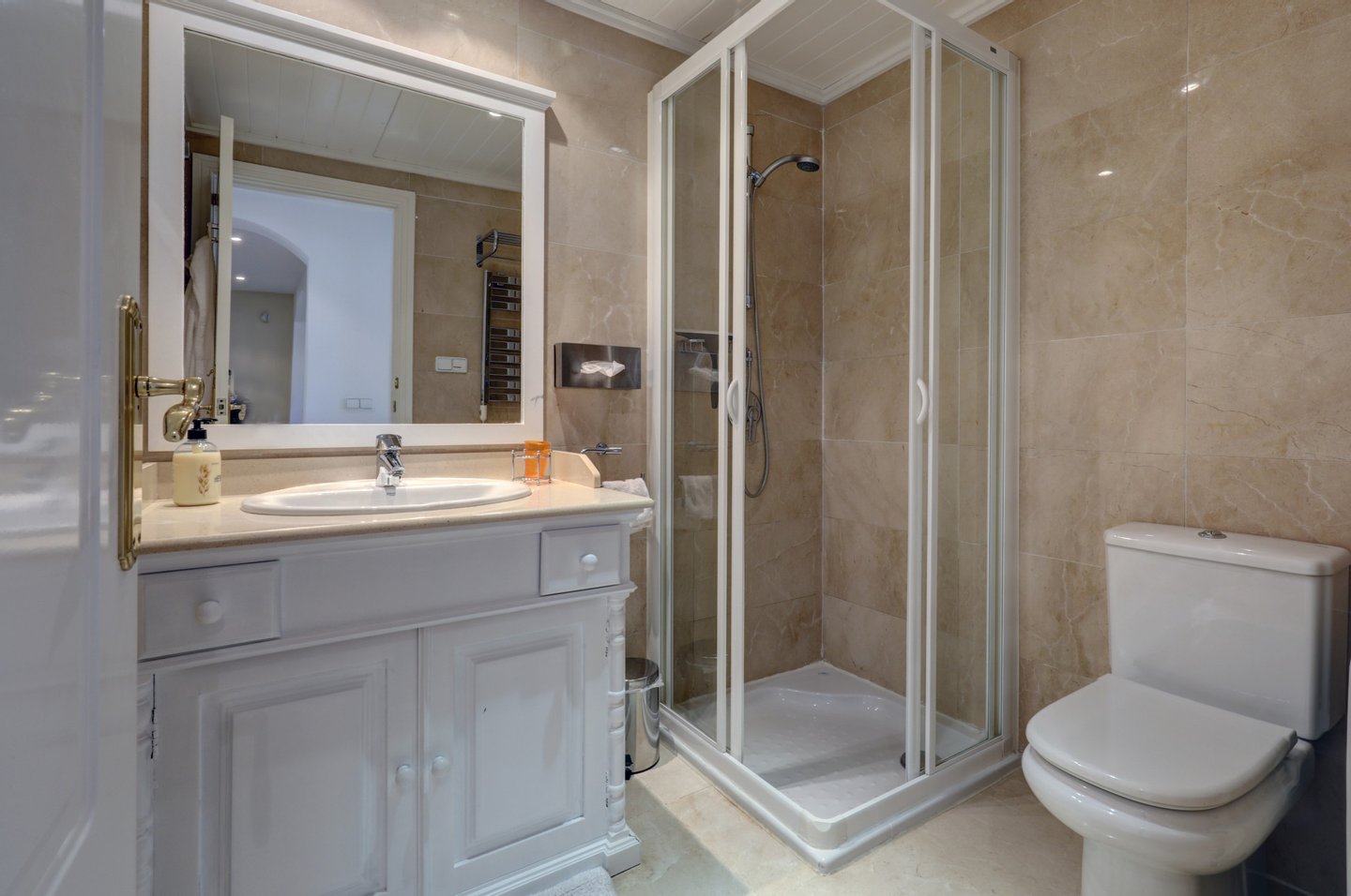 Annehmlichkeiten nahebei, Klimaanlage, Küche ausgestattet, Marmorböden, Abstellraum, Doppelverglasung, 24Std Sicherheitsdienst, Gästetoilette, Private Terrasse, Bergsicht, Golfsicht, Überdachte Terrasse, Einbauschränke, Geschlossene Wohnanlage,