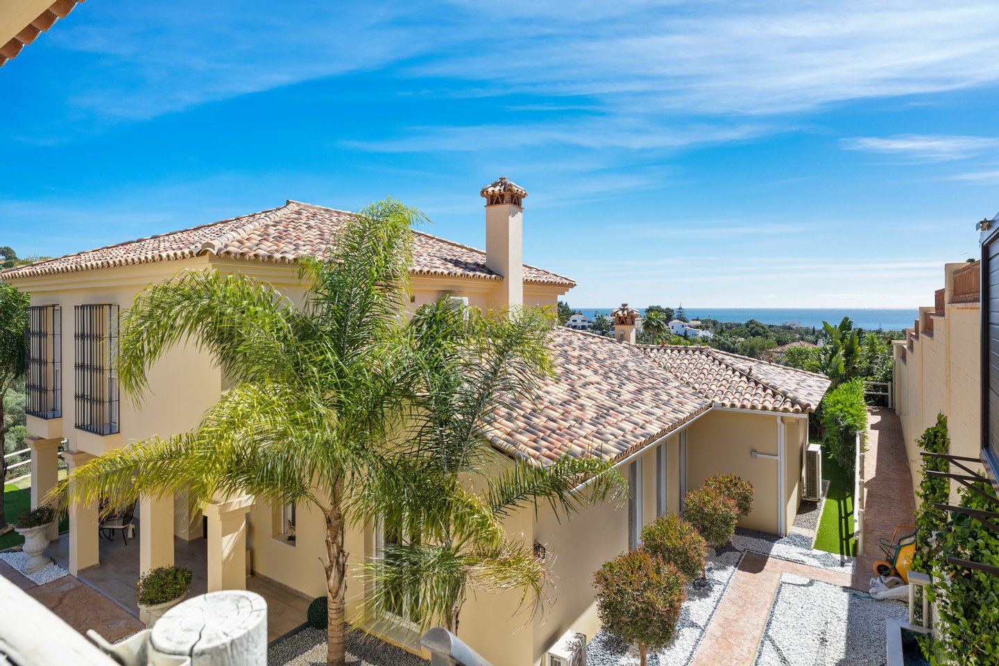 Bergnah, Klimaanlage, Küche ausgestattet, Offener Kamin, Gästezimmer, Abstellraum, Solarium, Doppelverglasung, Wohnzimmer, Grill, Gästetoilette, Private Terrasse, Wohnzimmer, Meerblick, Ausblick auf Landschaft, Bergsicht, Golfsicht, Fußbodenheizung im gesamten Haus, Hausautomation, Waschküche, Überdachte Terrasse, Einbauschränke, Aufzug, Blick auf Garten, Blick aufs Schwimmbad, Panoramablick , Meer/Strandnähe, Nähe Golfplatz, Offene Terrasse, Glastüren, Separates Esszimmer, Offene Küche, Hervorragender Zustand, Nähe von Einkaufsmöglichkeiten, Nahe Ortszentrum, Nahe Schulen, Haustiere erlaubt