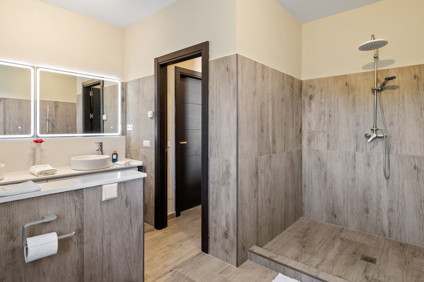 Außerdem gibt es ein separates Gästeapartment mit eigenem Eingang, das über einen Salon, eine offene Küche, ein Schlafzimmer und ein Badezimmer verfügt.