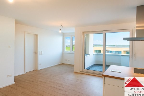 Vom Wohnbereich aus gelangen Sie auf den sonnigen Westbalkon, der einen wunderschönen Blick über die angrenzenden Felder bietet. Ob beim Frühstück oder beim Ausklang des Tages in der Abendsonne mit einem Glas Wein – dieser Platz lädt zum Entspannen und Wohlfühlen ein.