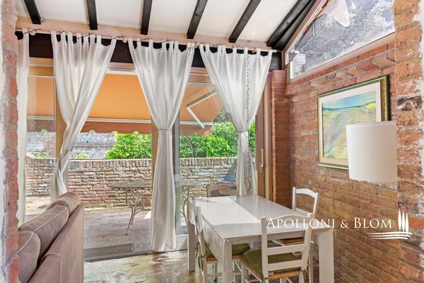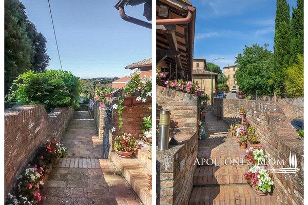 Perfekt restauriert und nur einen Steinwurf vom Dom entfernt, sofort bewohnbar, mit exklusivem Garten mit Olivenbäumen und Blick auf die Landschaft, zu verkaufen in Siena. Vor den Toren der Stadt Siena und der Möglichkeit, den Dom und die Piazza del