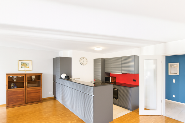 Ein weiterer Pluspunkt dieser Immobilie ist ihre außergewöhnlich flexible Grundrissgestaltung: Bei Bedarf lässt sich die bestehende Drei-Zimmer-Wohnung um ein bis zwei zusätzliche Räume erweitern – so kann aus einer Drei-Zimmer- eine großzügige Fünf-Zimmer-Wohnung entstehen. Damit passt sich das Raumkonzept Ihren individuellen Lebensumständen und Bedürfnissen perfekt an – ob Familie, Homeoffice oder Gästezimmer.