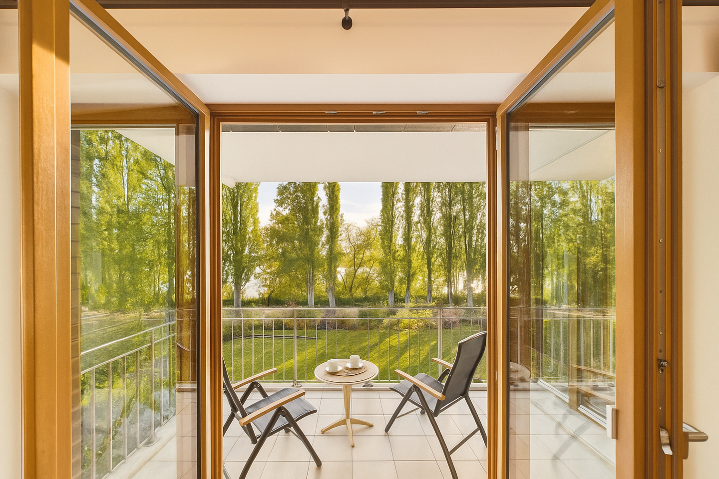 • bodentiefe, doppelt verglaste Holzfenster