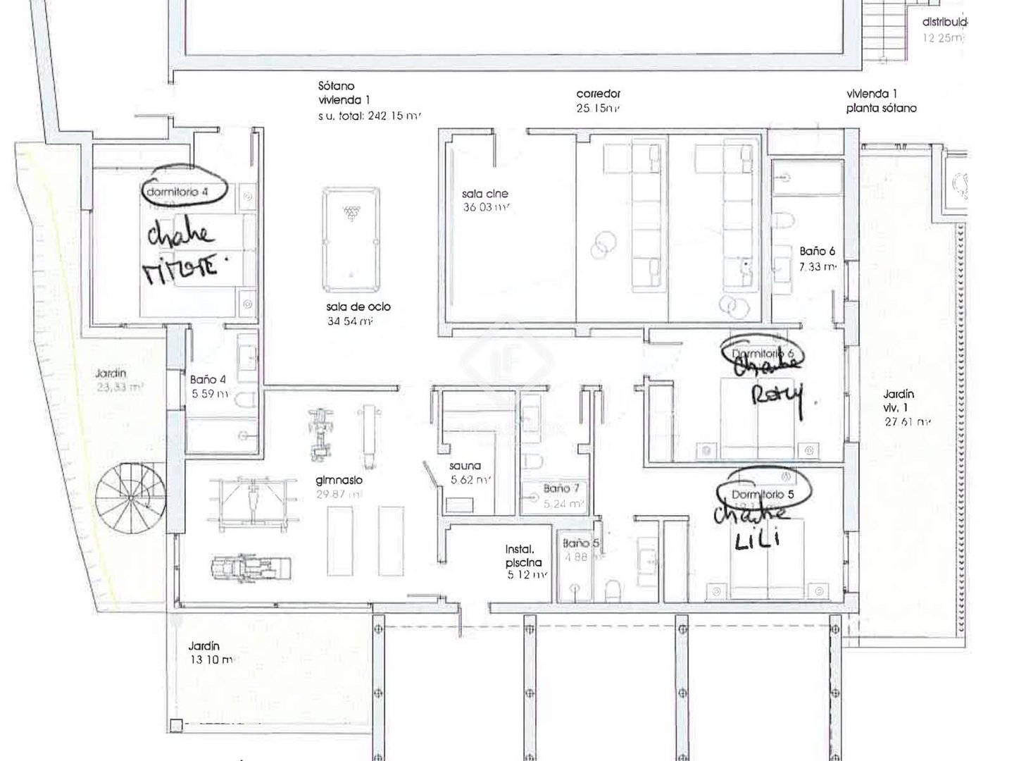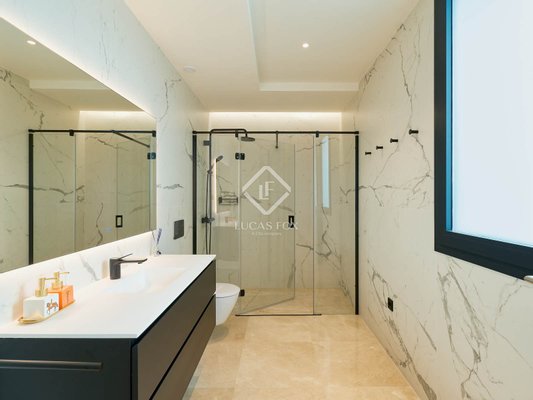 The lower level offers a space of almost 250 m² dedicated to leisure and well-being, with a private cinema room, a fully equipped gym, a sauna, a children's games room and three spacious bedrooms with private bathroom and built-in wardrobes.