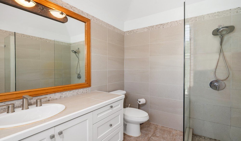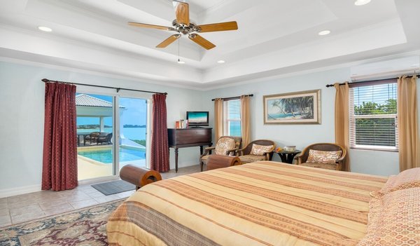 Die Hauptsuite und die zweite Schlafzimmersuite öffnen sich direkt auf die Terrasse am Strand, wo die sanfte Meeresbrise und der atemberaubende Blick auf den Sonnenuntergang ein ruhiges Refugium schaffen. Ein zusätzliches Gästezimmer bietet Komfort und Privatsphäre, und eine vielseitige Höhle bietet die Möglichkeit eines vierten Schlafzimmers oder eines Home-Office.