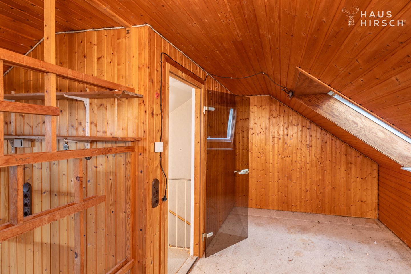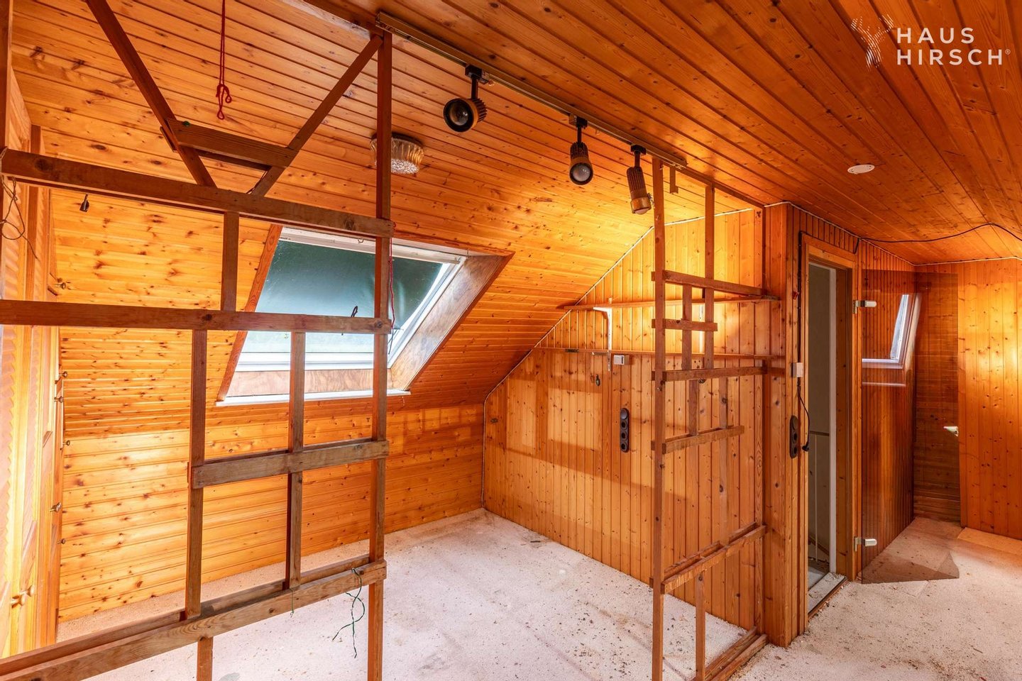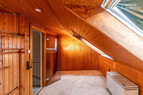 Im Dachgeschoss ist wiederum ein großer Raum vorhanden, der auch als Kinderzimmer genutzt wurde, etwas abweichend vom Grundriss.