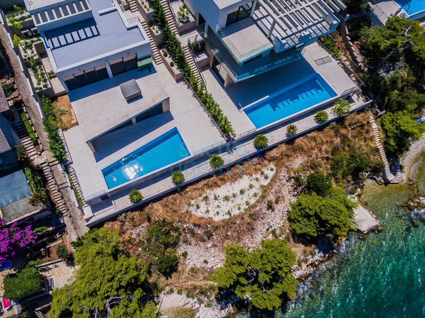 Zum Verkauf steht eine exklusive Villa in der kroatischen Insel Okrug Donji (Trogir), die höchsten Wohnkomfort und erstklassige Ausstattung vereint. Diese luxuriöse Immobilie wurde 2021 erbaut und bietet auf einer Wohnfläche von ca. 349 m² acht großzügig geschnittene Zimmer, darunter fünf elegante Schlafzimmer und fünf moderne Badezimmer.