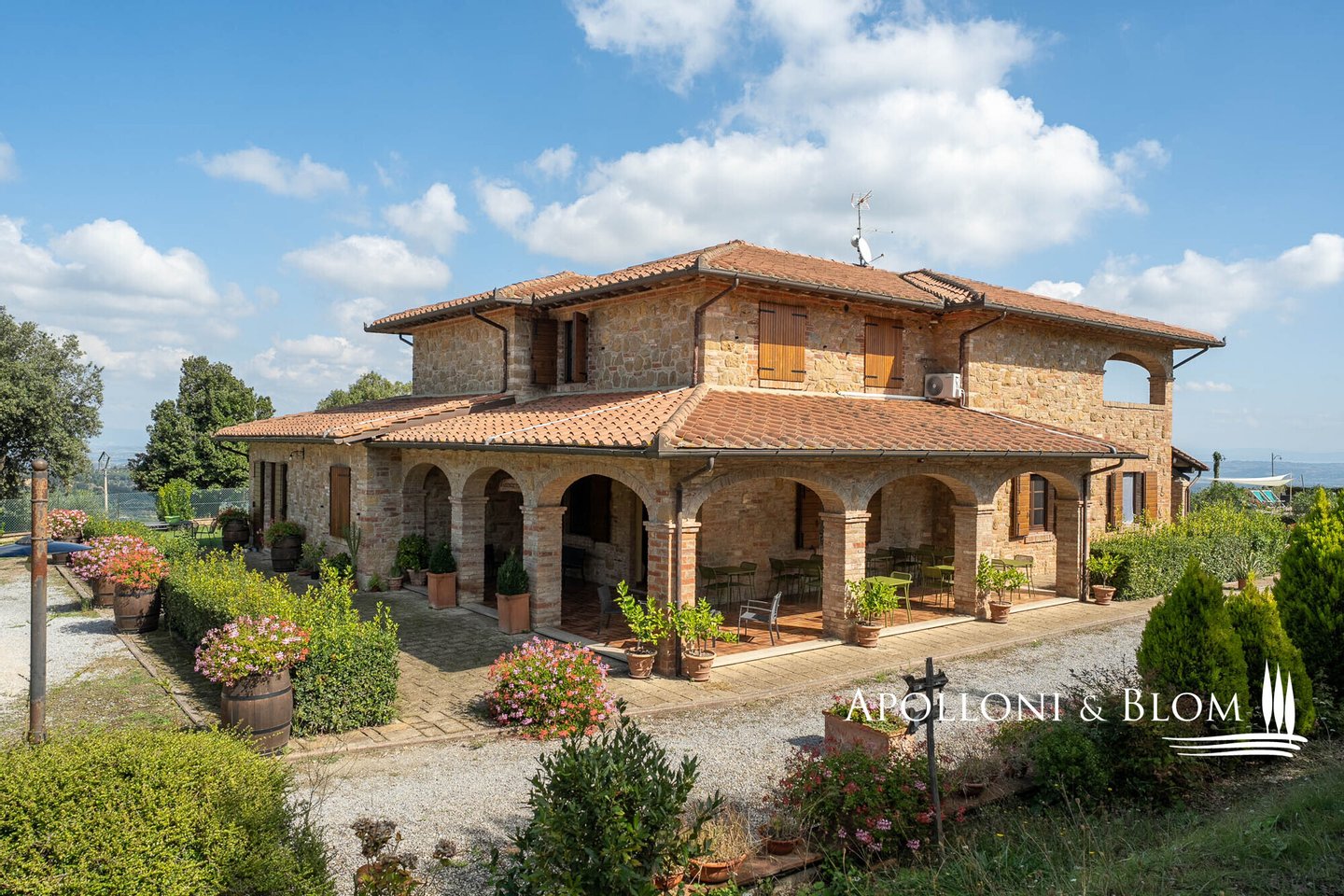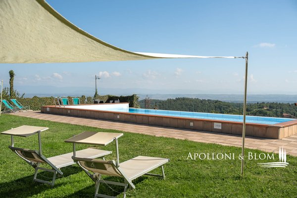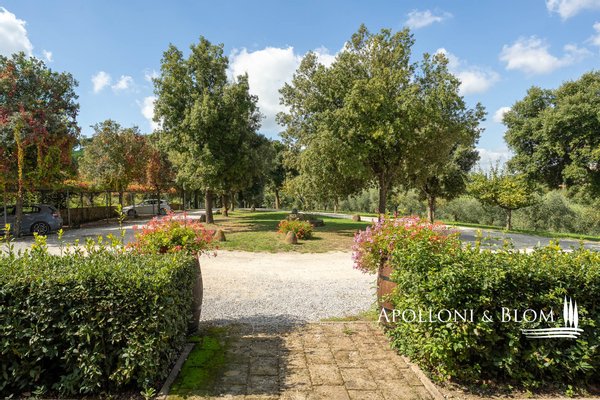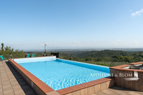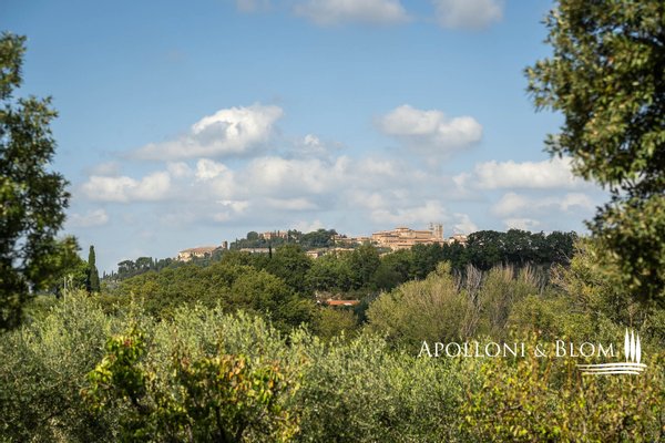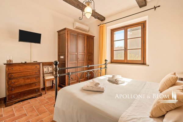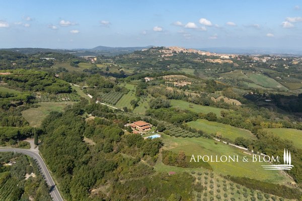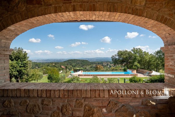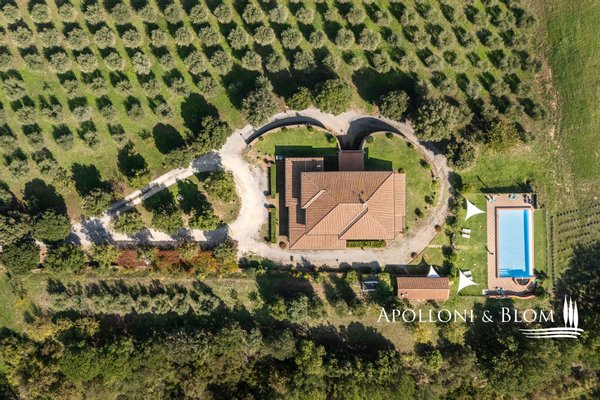 Atemberaubende Aussicht über das Val d'Orcia, auf 5,8 Hektar Land, fein restauriert mit Schwimmbad und Gästeanbau in Montepulciano zu verkaufen. Mit spektakulärem Blick über das bezaubernde Val d'Orcia und das Valdichiana wird dieser Landsitz von außergewöhnlicher Eleganz zum Verkauf angeboten, nur wenige Minuten vom mittelalterlichen Charme Montepulcianos entfernt. Umgeben von ca. 5,8 Hektar privatem Land, ein toskanisches Anwesen, in dem sich traditioneller architektonischer Charakter harmonisch mit modernem Komfort auf hohem Niveau verbindet. Das 2005 mit hochwertigen Materialien und unter Berücksichtigung des lokalen Stils errichtete Haupthaus erstreckt sich über drei Etagen mit einer Fläche von ca. 575 Quadratmetern, einschließlich eines Untergeschosses mit Keller, technischen Räumen und Lagerräumen. Zu den Haupträumen gehören mehrere Wohn- und Empfangsbereiche, zwei Küchen und sechs fein eingerichtete Schlafzimmer, jedes mit eigenem Bad, Klimaanlage und maßgefertigten Details. Einige haben einen eigenen Eingang und eine möblierte Terrasse zur alleinigen Nutzung, ideal, um die Privatsphäre zu wahren und die spektakuläre Aussicht zu genießen. Das Haus liegt in einem angelegten Garten und ist von alten Oliven- und Obstbäumen umgeben, die den Swimmingpool und die Liegewiese elegant einrahmen, ein einladender Ort, der einen freien Blick auf die umliegende Landschaft bietet. Das Leben im Freien wird durch schattige Essbereiche und Entspannungsecken bereichert, die eine kontinuierliche und harmonische Verbindung zwischen Architektur und Natur schaffen. Zwei Nebengebäude, die derzeit als Lagerräume genutzt werden, runden das Angebot ab und bieten weitere Entwicklungs- und Umgestaltungsmöglichkeiten, sofern sie genehmigt werden. Zum gesamten Anwesen gehört ein spezialisierter Olivenhain von 1,7 Hektar, der mit geschätzten autochthonen Sorten wie Leccino, Frantoio und Moraiolo bepflanzt ist und ein renommiertes natives Olivenöl extra produziert. Der Rest des Anwesens besteht aus 2,4 Hektar Ackerland und einem Obstgarten, der landwirtschaftliche Aktivitäten und Freizeitaktivitäten unterstützt. Gegenwärtig wird das Anwesen erfolgreich als Boutique-Bauernhof mit einem etablierten Einkommensstrom und gehobener Gastfreundschaft geführt. Dank seiner strategischen Lage in der Nähe berühmter kultureller Ziele wie Pienza, Montalcino und Bagno Vignoni eignet sich das Anwesen jedoch auch perfekt für ein raffiniertes privates Wohnprojekt oder eine prestigeträchtige Beherbergungseinrichtung. Zurückhaltend, aber leicht zugänglich, nur 3 km von den wichtigsten Dienstleistungen entfernt, ist dies eine prestigeträchtige Residenz, perfekt gelegen am Treffpunkt zwischen der großen toskanischen Tradition und dem diskreten Luxus der modernen Landschaft.