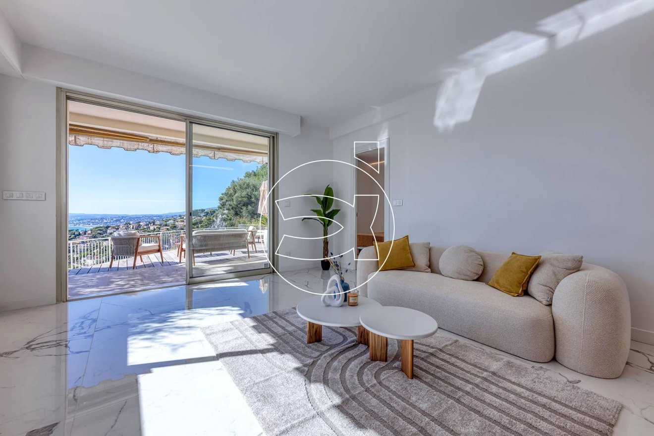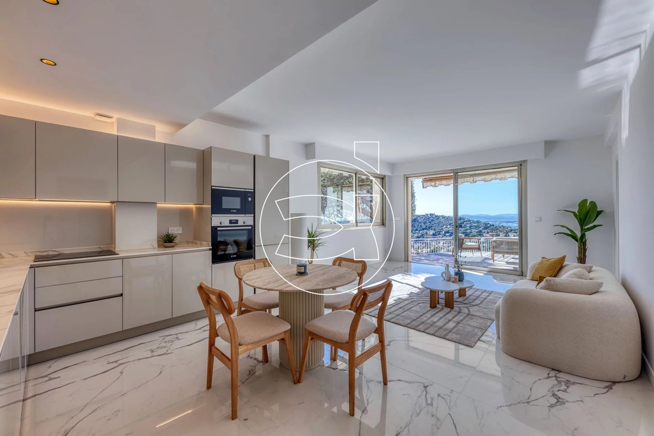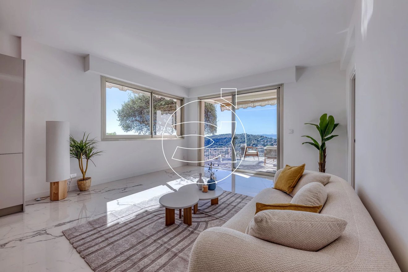 Mit einem herrlichen Blick über Villefranche, Cap-Ferrat und bis nach Villeneuve-Loubet erwartet Sie eine prächtige 3-Zimmer-Wohnung mit 62 m², komplett mit hochwertigen Materialen renoviert.
