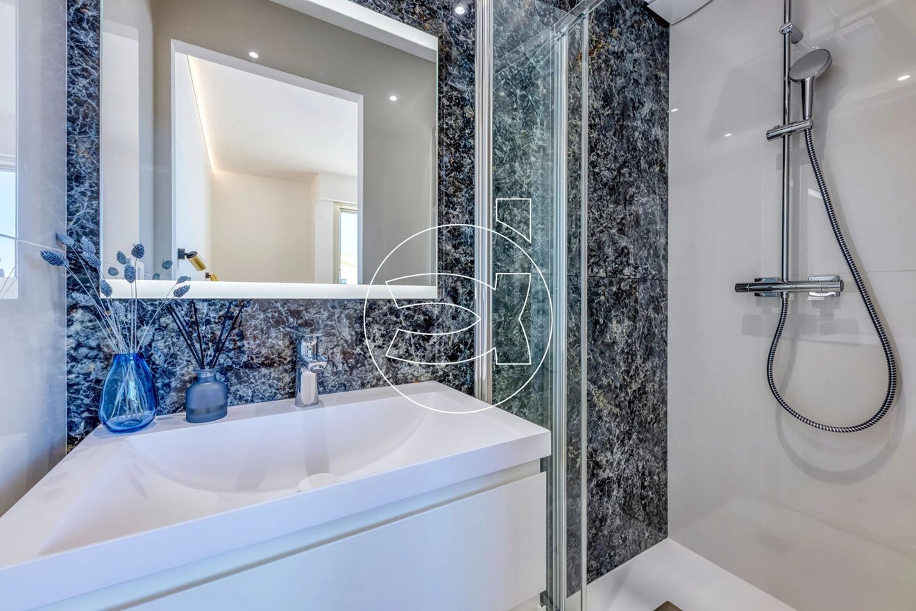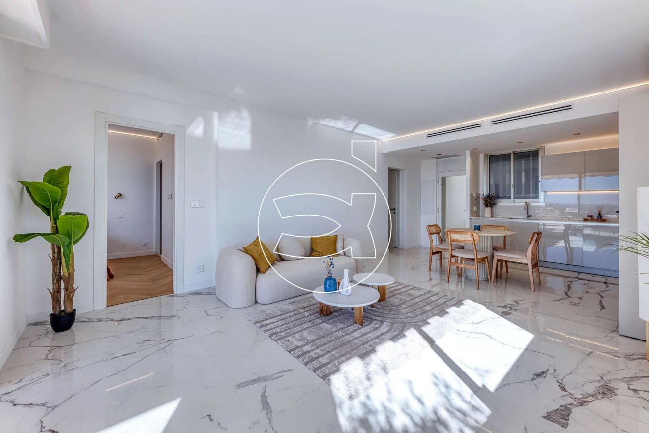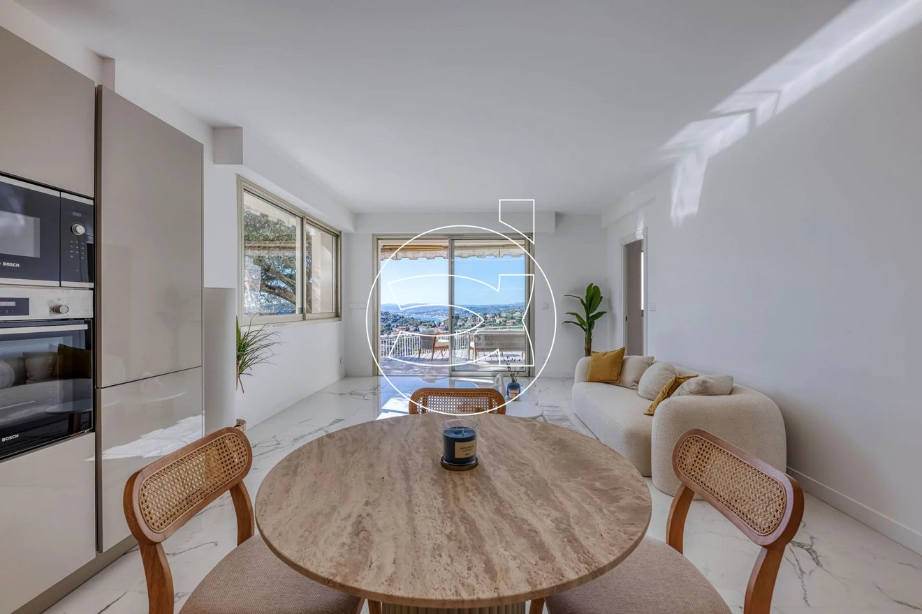 Mit einem herrlichen Blick über Villefranche, Cap-Ferrat und bis nach Villeneuve-Loubet erwartet Sie eine prächtige 3-Zimmer-Wohnung mit 62 m², komplett mit hochwertigen Materialen renoviert.