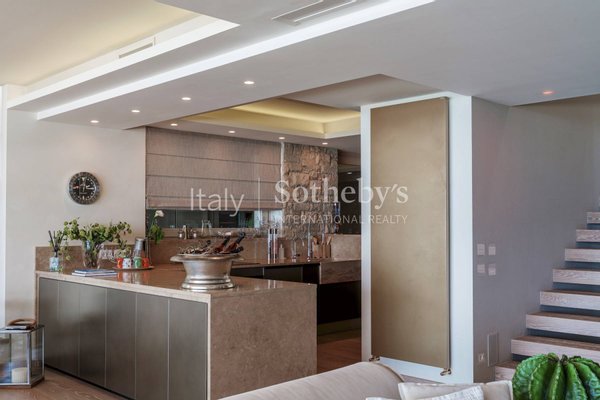 Outdoors, the infinity pool appears to blend seamlessly with the horizon, offering sunrises and sunsets of rare beauty. The landscaped garden, meticulously curated, features an outdoor kitchen and a guest dépendance complete with private suite, bathroom, and kitchenette, ideal for hosting guests in total privacy. The upper level comprises two bright bedrooms, each with its own en suite bathroom, where waking up means being greeted by the mesmerizing lake view. The spa and fitness area, also with panoramic vistas, is designed for moments of well-being and contemplation.