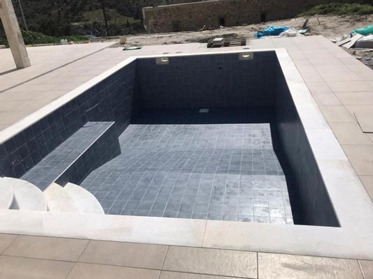 – Große, komplett geflieste Terrassen vor und hinter der Villa.