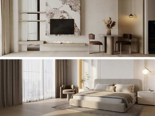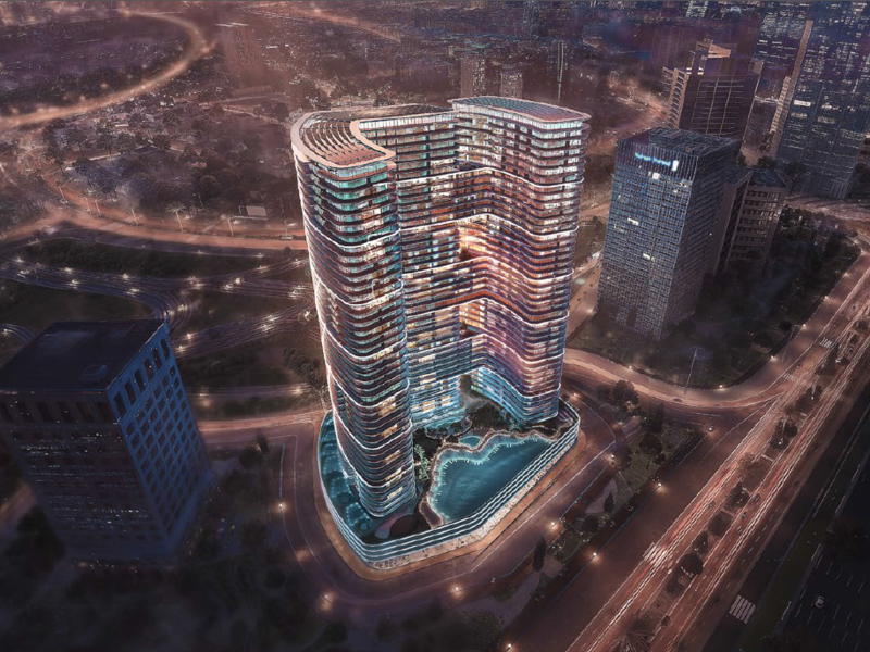 Luxuriöses 1-Zimmer-Apartment mit Blick auf die Skyline im oberen Stockwerk