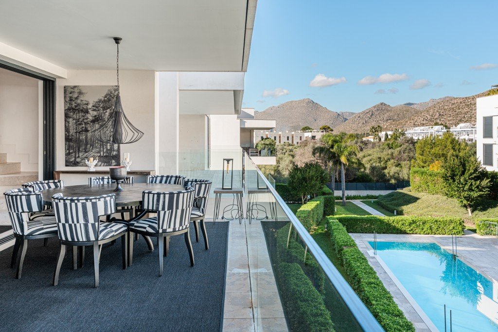 Ein besonderes Highlight ist die großzügige private Dachterrasse, die direkt vom Wohnbereich aus zugänglich ist. Dieser exklusive Außenbereich verfügt über einen privaten Pool, eine überdachte Lounge-Zone und einen atemberaubenden Panoramablick auf das Meer und das Tramuntana-Gebirge. Ein separates WC auf dieser Ebene sorgt für zusätzlichen Komfort.