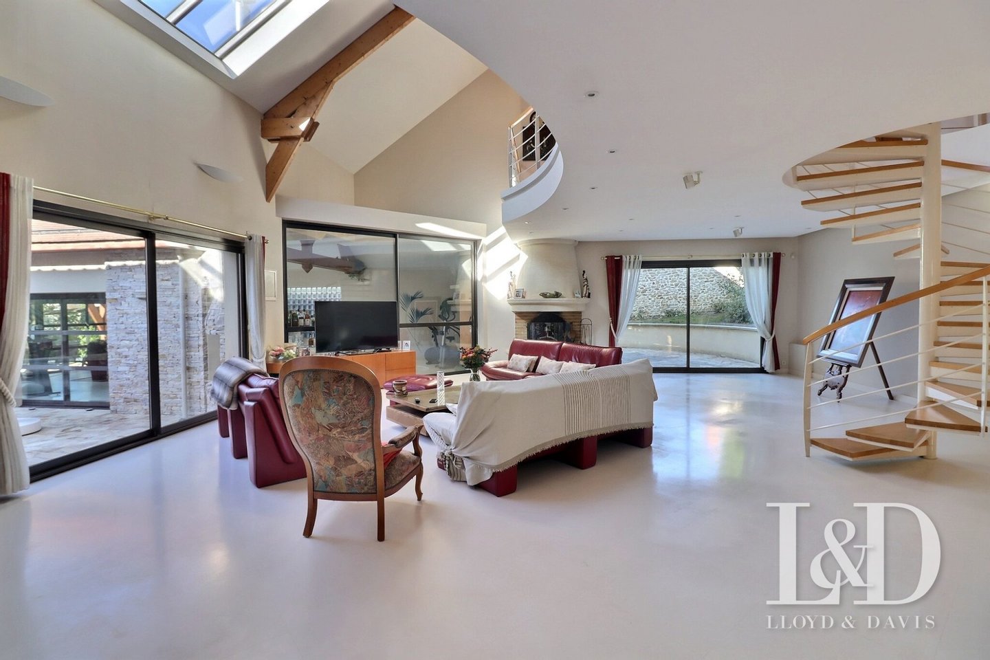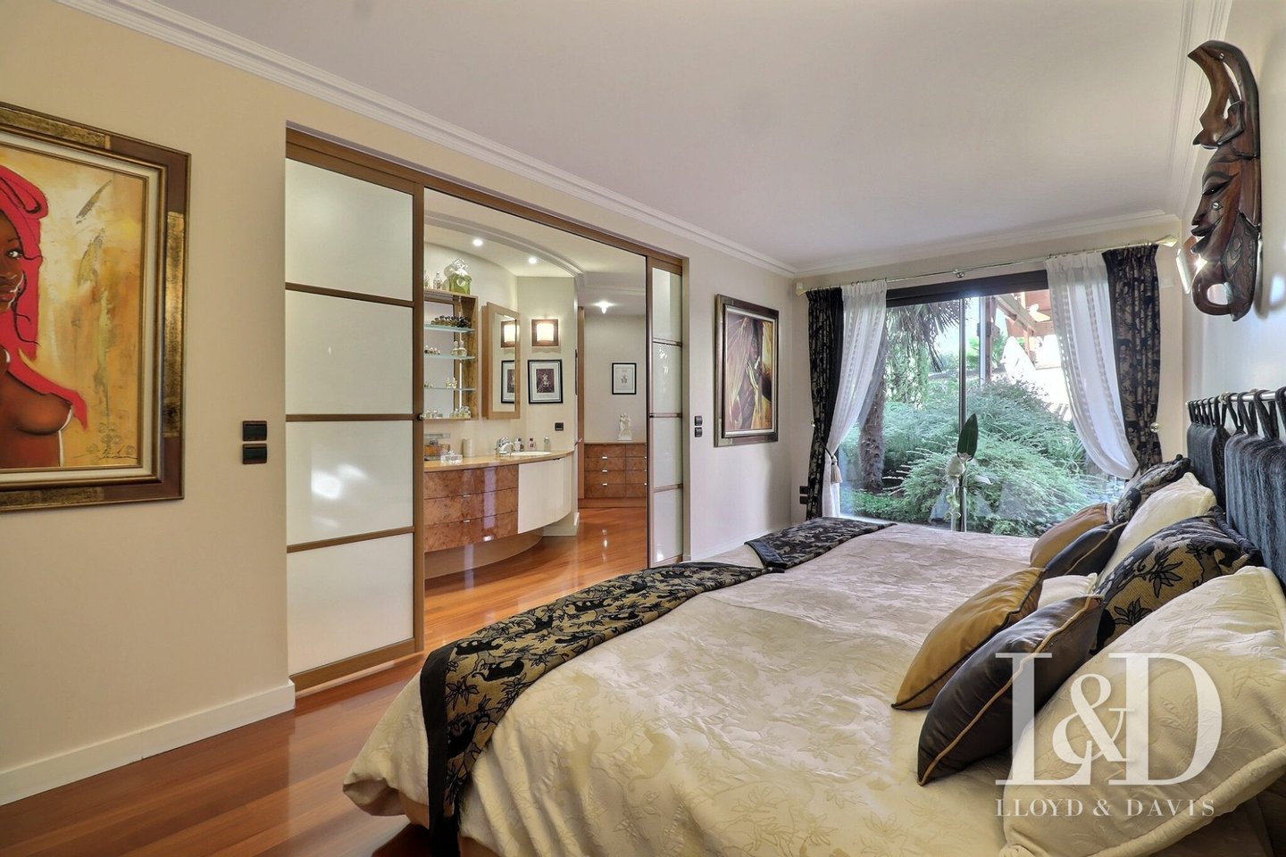 Just a stone's throw from the shops and all amenities, stands this exceptional contemporary villa, designed in 2003 by the renowned architect Philippe GEORGI. Designed with a rare attention to detail and quality, it embodies modernity, elegance and living comfort. Ideally facing south, this residence unfolds around a Mediterranean patio adorned with majestic palm trees and a hundred-year-old olive tree, a true witness of time. Built on an enclosed plot, perfectly preserved from prying eyes, it combines intimacy and serenity. The garden benefits from an automatic watering system and subtle night lighting, enhancing each plant species and revealing the magic of the place at night. With a living area of 482 m² (with a useful area of 761 m²), the villa offers remarkable volumes, top-of-the-range services and carefully selected noble materials. As soon as you enter, the vast living room, bathed in light thanks to its large bay windows, opens onto three terraces, each with its own orientation, offering varied atmospheres throughout the day. An elegant mezzanine overlooks this living space and can accommodate an office, games room or TV room according to your desires. In the natural extension of the living room, a heated indoor swimming pool, a real wellness area, opens onto the garden. It is equipped with all the necessary facilities for relaxation or sport: counter-current swimming, sauna, hammam, private bathroom, integrated sound system and adjoining bar. The kitchen, custom-made by a French kitchen designer, combines aesthetics and functionality. Entirely open to the living room, it is accompanied by a fully equipped scullery, with generous storage space. This level also hosts an air-conditioned master suite and a second bedroom also air-conditioned, both facing the patio and its Mediterranean essences. Accessible by a beautiful staircase, the first level leads to four bright bedrooms, all extended by a private balcony or terrace. A modern bathroom and independent sanitary facilities complete this floor dedicated to family privacy. On more than 300 m², the basement reserves rare services such as a garage that can accommodate up to five vehicles, a wine cellar specially designed for the optimal conservation of the great vintages, large storage spaces and sanitary facilities, and above all a real disco room of about 100 m², fully equipped with a DJ area, a professional sound system, a fitted kitchen that also serves as a bar. A unique place to see again and celebrate. This level also houses the technical room with all the villa's facilities (boilers, pool dehumidifier, etc.), guaranteeing comfort and efficiency. A studio completes this exceptional set, ideal for receiving guests or accommodating staff in complete autonomy. Agency fees included of 3.73% TTC to be paid by the buyer. Price excluding fees 2,410,000 €. Energy class B, Climate class C. Estimated average annual energy expenditure for standard use, based on energy prices for the year 2017: €2999.00. Date of completion of the DPE: 09-04-2019. Information on the risks to which this property is exposed is available on the Géorisques website: georisques.gouv.fr. Your LLOYD & DAVIS advisor: Thierry NURIT Commercial Agent (Sole Proprietorship) RSAC 877 761 585 Evry RCP VD7.000.002/ACI15323 Sérénis Assurances
