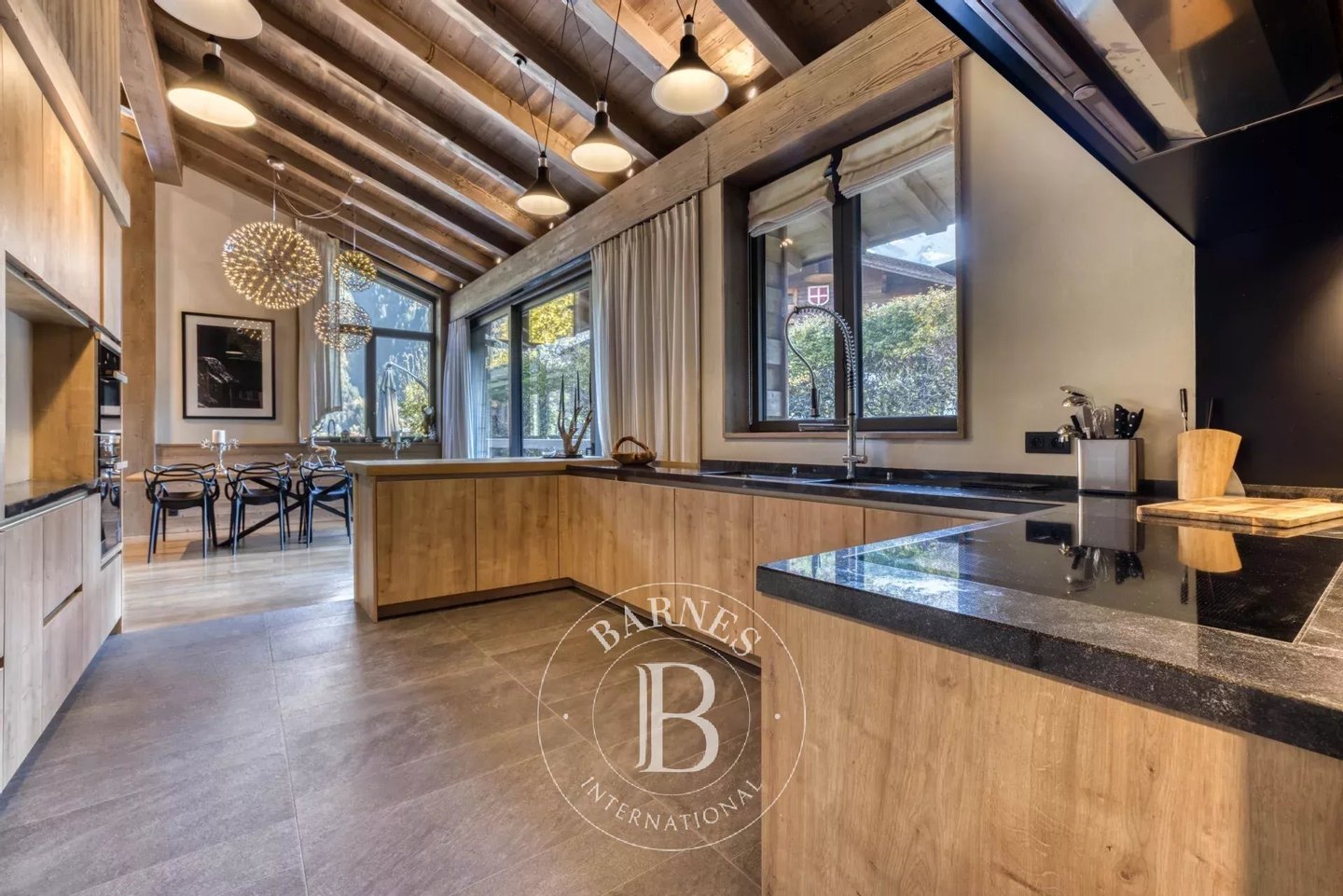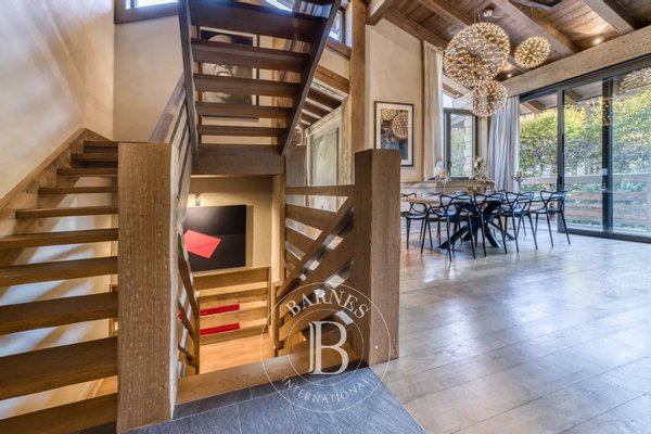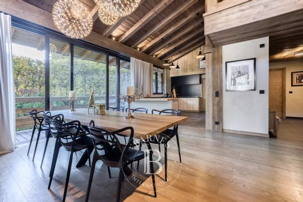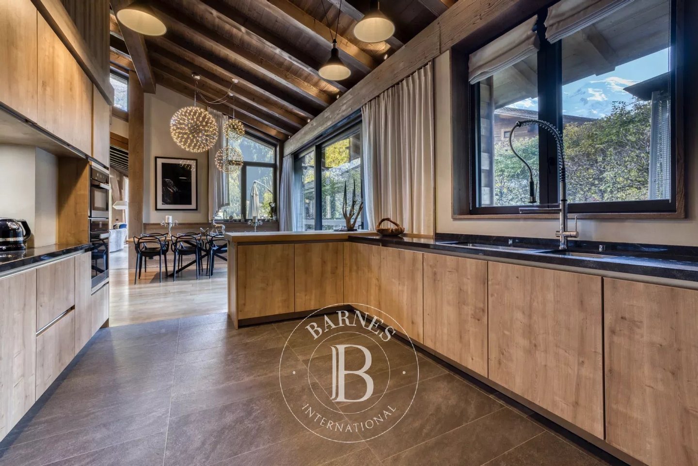 Das Chalet ist aus hochwertigen Materialien wie Eiche, Granit und Calacatta-Marmor gefertigt und mit Fußbodenheizung und einem geothermischen System ausgestattet. Jede Etage ist mit einem Aufzug erreichbar und öffnet sich zu privaten Balkonen. Der 580 m² große, angelegte Garten sorgt für absolute Privatsphäre, und dennoch ist das Zentrum von Chamonix nur einen kurzen Spaziergang entfernt.