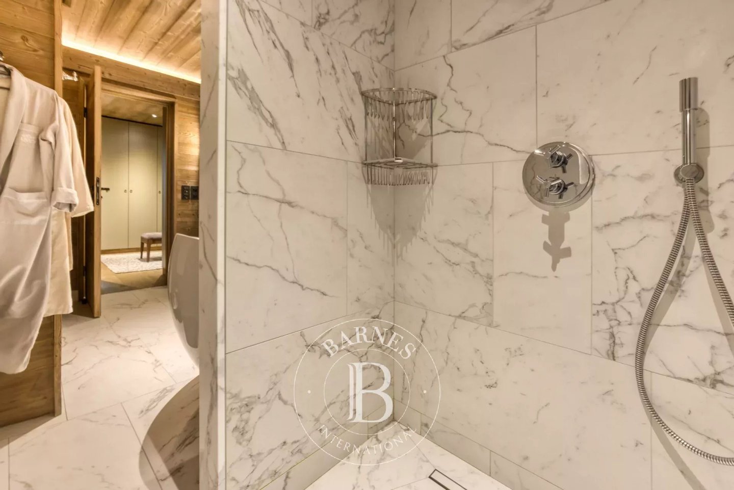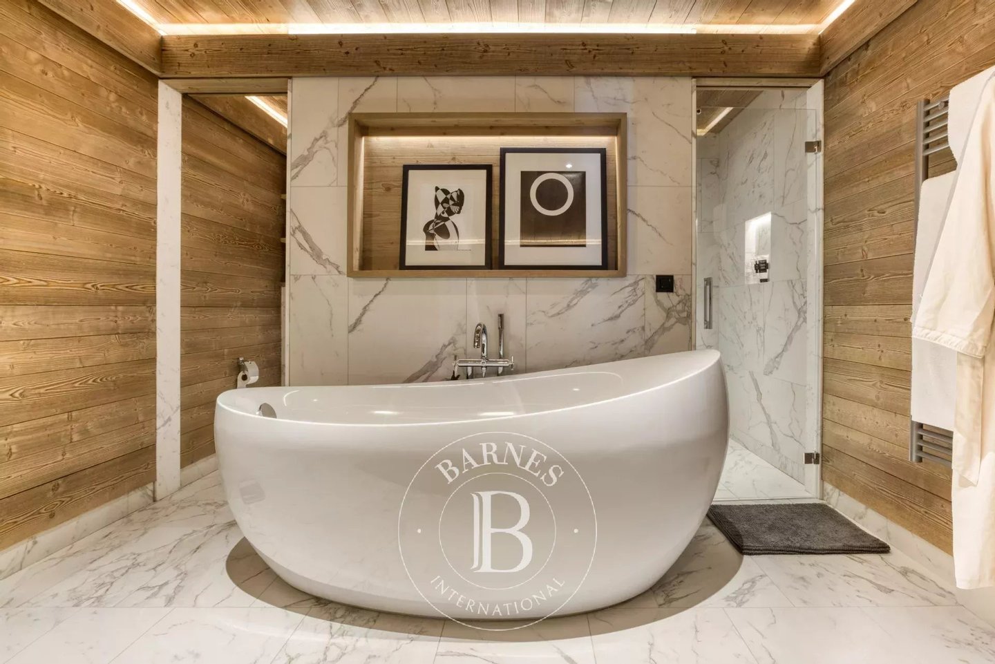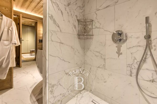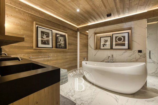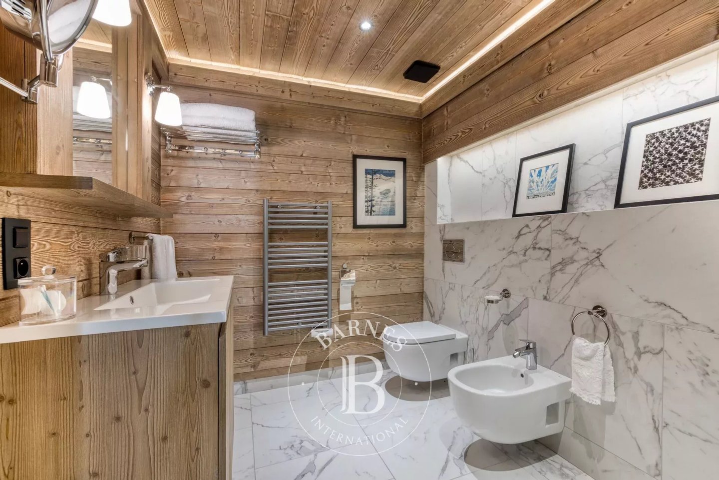 Das Chalet ist aus hochwertigen Materialien wie Eiche, Granit und Calacatta-Marmor gefertigt und mit Fußbodenheizung und einem geothermischen System ausgestattet. Jede Etage ist mit einem Aufzug erreichbar und öffnet sich zu privaten Balkonen. Der 580 m² große, angelegte Garten sorgt für absolute Privatsphäre, und dennoch ist das Zentrum von Chamonix nur einen kurzen Spaziergang entfernt.