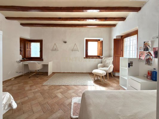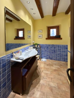 Es verfügt über 4 geräumige Schlafzimmer, 3 Badezimmer und ein Gäste-WC sowie ein gemütliches Wohnzimmer mit Kamin und antiken Eichenmöbeln, die dem Raum Charakter und Wärme verleihen.