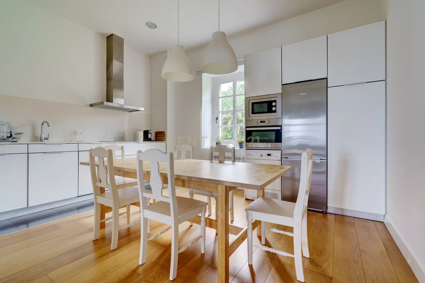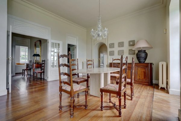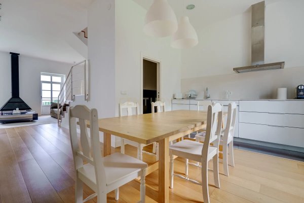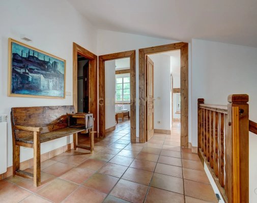 Getreu dem baskischen Landes-Stil zeigt das Haus eine robuste Eleganz: braune Holzrahmen, weiße Kalkfassaden und traditionelle Fensterläden. Mit mehr als 730 m² Nutzfläche verteilt sich die Villa auf vier bewohnbare Ebenen und eine Gartenebene, mit 4 Maisonette-Einheiten, die Vielseitigkeit für den privaten oder Urlaubsgebrauch bieten.