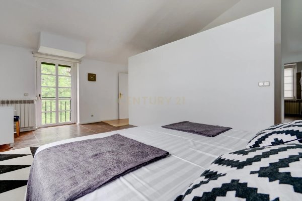 Geräumige und helle Zimmer, Wohnzimmer mit Kamin, Esszimmer mit Zugang zu Terrassen, Schlafzimmer mit eigenem Bad und edle Details. Mehr als 12 Schlafzimmer, private Wohnzimmer, ausgestattete Küchen und luxuriöse Badezimmer. Die Gartenebene umfasst eine Garage, einen Heizraum und eine offene Fläche von 90 m².