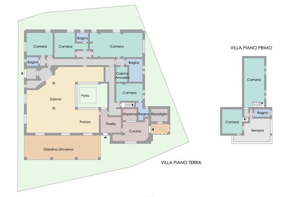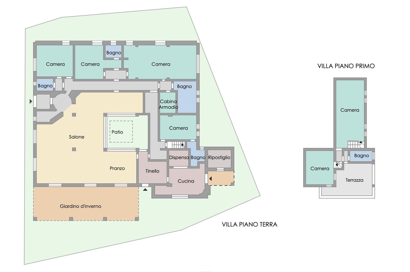 Neben der Villa befindet sich ein Bürogebäude von 215 Quadratmetern mit Doppeleingang, einem großen Freiraum, der von Bogenfenstern umgeben ist, zwei Betriebsbüros und einem Badezimmer: ein idealer Raum für berufliche Aktivitäten oder exklusive Veranstaltungen.