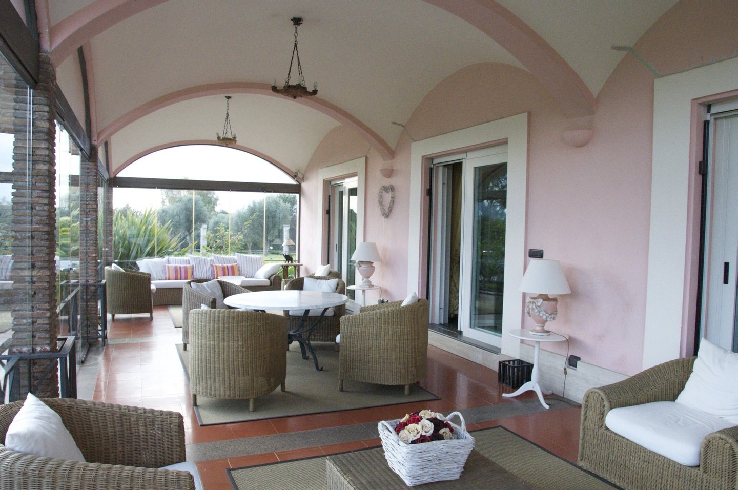 Neben der Villa befindet sich ein Bürogebäude von 215 Quadratmetern mit Doppeleingang, einem großen Freiraum, der von Bogenfenstern umgeben ist, zwei Betriebsbüros und einem Badezimmer: ein idealer Raum für berufliche Aktivitäten oder exklusive Veranstaltungen.