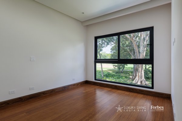 Das Hauptschlafzimmer umfasst eine private Terrasse mit Blick auf das 13. Loch des Golfplatzes, einen übergroßen begehbaren Kleiderschrank und ein luxuriöses en-suite-Bad mit einer Bankdusche, einem Doppelwaschbecken und hochwertigen Ausstattungen. Im zweiten Stock, mit Bambus-Parkettboden, finden Sie ein gemütliches Familienfernsehzimmer, drei Nebenschlafzimmer und zwei voll ausgestattete Badezimmer.