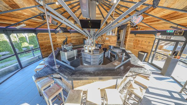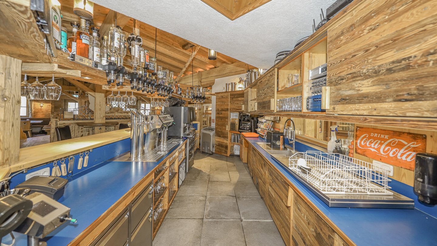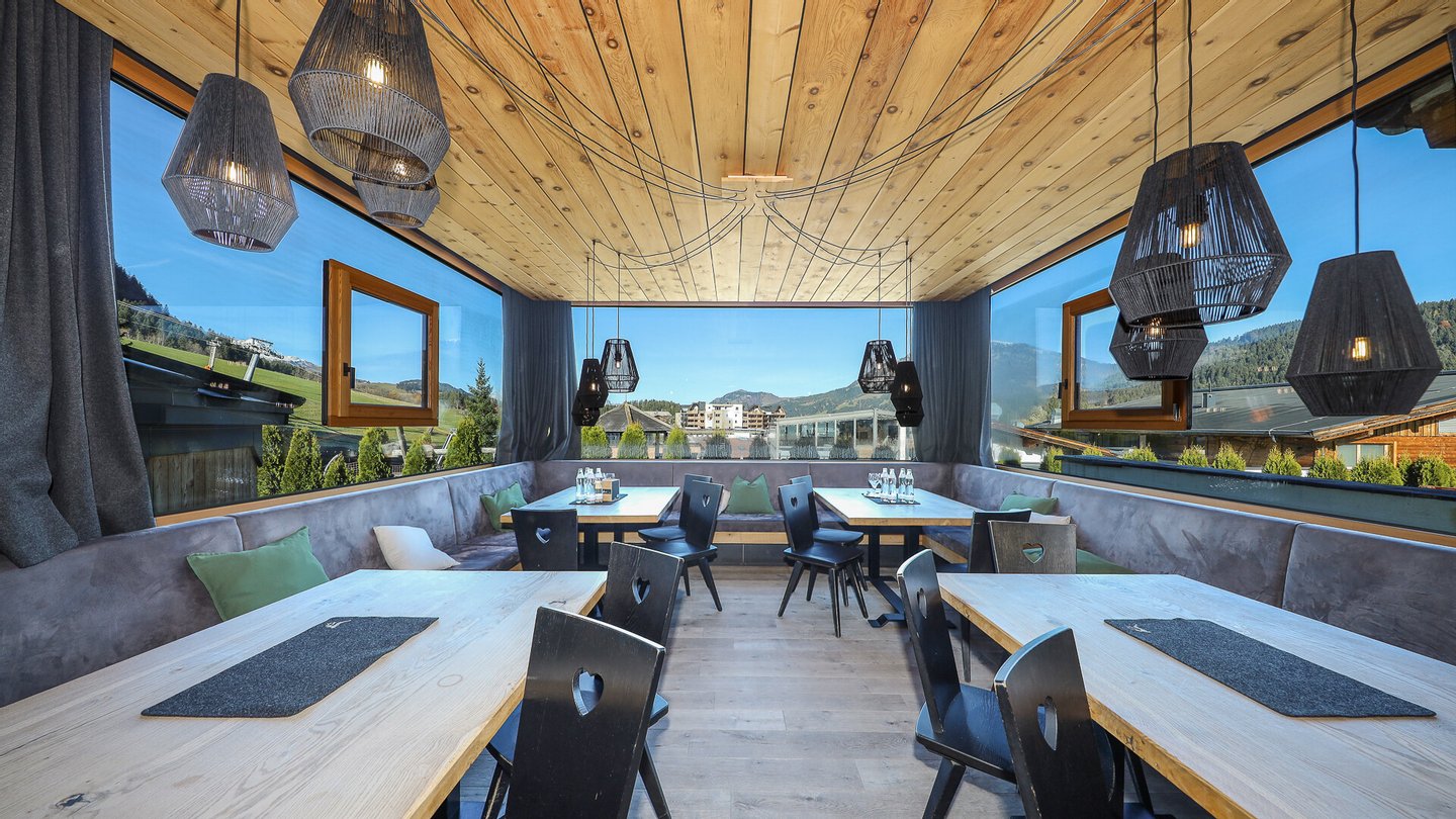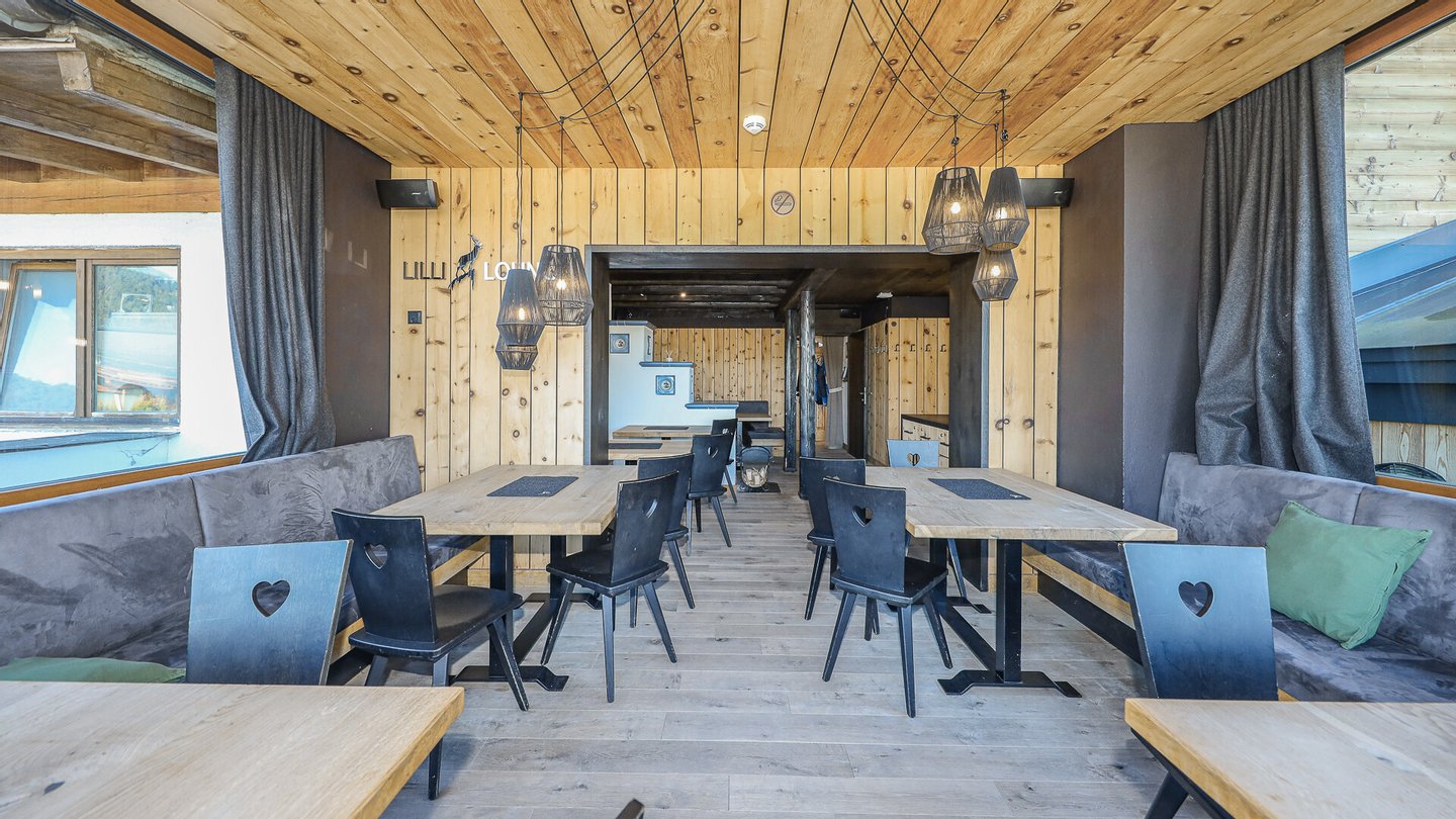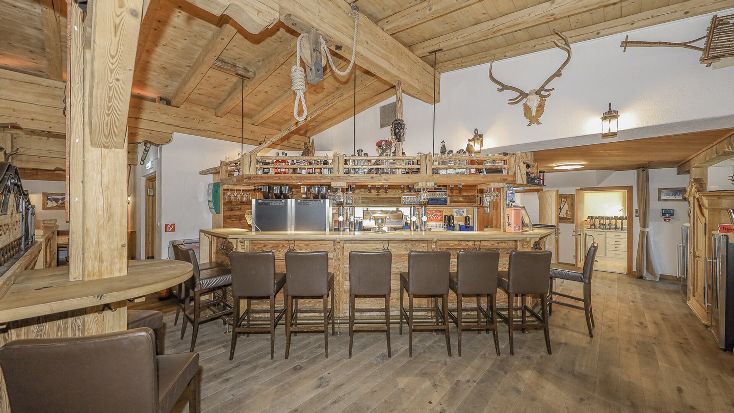 Im Erdgeschoss sind der 185 m² große rustikale Restaurant im Almüttencharakter mit Bar für 220 Personen, eine exklusive Abend-Lounge mit Kamin für 70 Personen, die große überdachte Schirmbar für bis zu 130 Personen, der Wintergarten für 200 Personen mit einer Innenterasse sowie eine Außenterrasse, die komplett ausgestattete Küche und ein kleines Büro vorhanden.