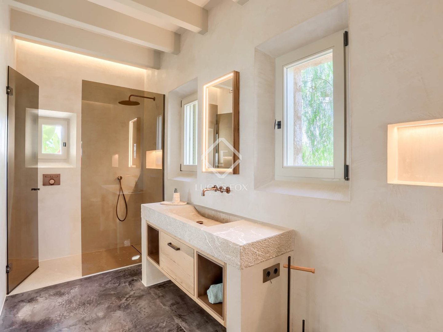 In der ruhigen Umgebung von Llombards, einer zeitlosen Ecke Mallorcas, wo Steinmauern auf hügelige Landschaft treffen, erhebt sich Sa Comuna, eine Villa, die die Essenz mediterranen Lebens mit zeitgenössischer Raffinesse einfängt. Dieses Projekt verbindet traditionelle Materialien mit moderner Architektur und bietet ein Zuhause, das sowohl in der Geschichte der Insel verwurzelt als auch auf den heutigen Lebensstil zugeschnitten ist. Die Villa erstreckt sich über drei Ebenen, wobei jeder Raum auf ein ausgewogenes Verhältnis von Komfort, Helligkeit und Naturverbundenheit ausgelegt ist. Im Erdgeschoss öffnet sich das Herzstück des Hauses mit einem großzügigen Wohnbereich und einer eleganten Küche mit Essbereich, die nahtlos in Terrassen und Gärten übergehen. Große Fenster rahmen den Ausblick ein und schaffen eine Kontinuität zwischen Innen- und Außenbereich. Ein Doppelschlafzimmer mit eigenem Bad und ein Gästebad vervollständigen diese Ebene und bieten Privatsphäre und Komfort. Die erste Etage ist der Erholung und dem Rückzug gewidmet und verfügt über vier helle Doppelzimmer, jedes mit eigenem Bad. Die über 36 Quadratmeter große Hauptsuite verfügt über eine private Terrasse, auf der der Morgen mit sanftem mediterranem Licht beginnt und der Abend mit ruhigen Sonnenuntergängen endet. Die untere Ebene bietet flexible Bereiche, die an die Bedürfnisse des Eigentümers angepasst werden können, sei es als Wellnessbereich, Heimkino, Fitnessraum oder Büro. Zusätzlich gibt es ein Gästeapartment. Die Außenbereiche wurden sorgfältig gestaltet, um den Rhythmus des mallorquinischen Lebens widerzuspiegeln. Ein großzügiger Swimmingpool mit über 67 Quadratmetern lädt zu langen Sommernachmittagen ein, während schattige Veranden und Pergolen den perfekten Rahmen für Mahlzeiten im Freien oder zum Entspannen mit Freunden bieten. Das Gelände ist mit Olivenbäumen, Zitrusplantagen und einem kleinen Gemüsegarten angelegt und verstärkt das Gefühl, in den authentischen Charme der Insel einzutauchen. Steinmauern, Naturpflaster und Holzdetails sorgen für Wärme und Struktur und sorgen dafür, dass sich die Villa harmonisch in ihre Umgebung einfügt. Sa Comuna liegt auf einem über 15.000 Quadratmeter großen Grundstück und bietet absolute Privatsphäre, während das türkisfarbene Wasser von Cala Llombards und Caló des Moro nur eine kurze Autofahrt entfernt ist. Mit modernen energieeffizienten Systemen und der Möglichkeit, einen Aufzug einzubauen, wurde das Haus sowohl elegant als auch funktional gestaltet. Bitte kontaktieren Sie uns für weitere Informationen.