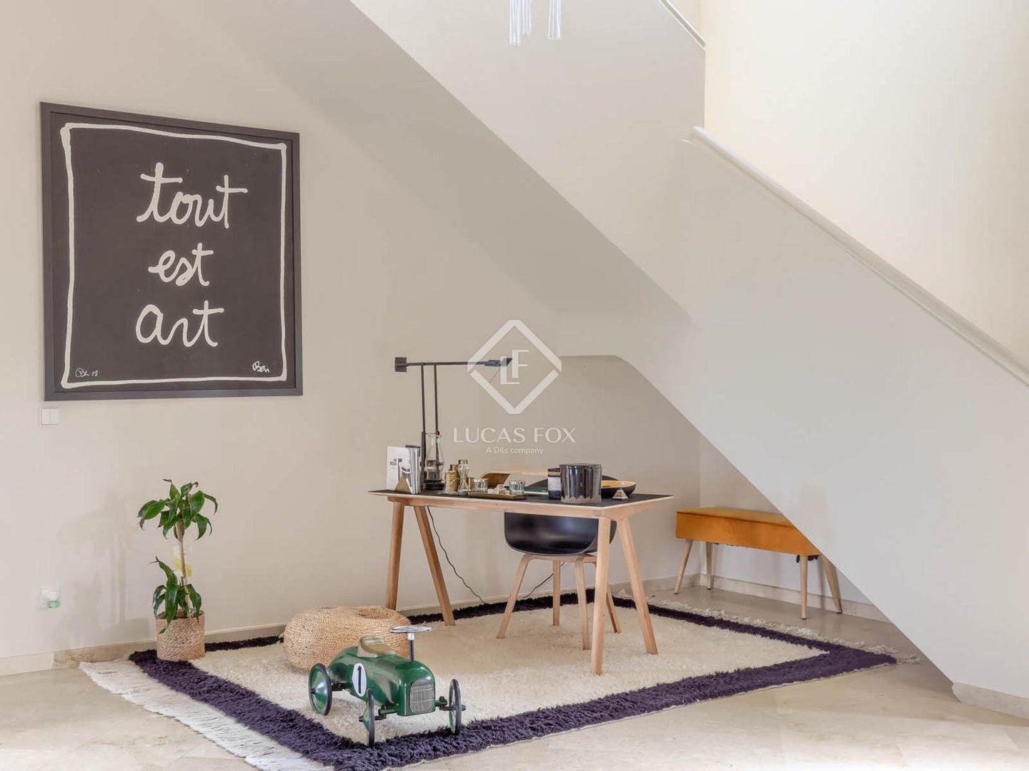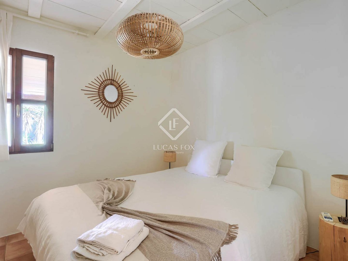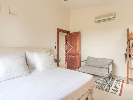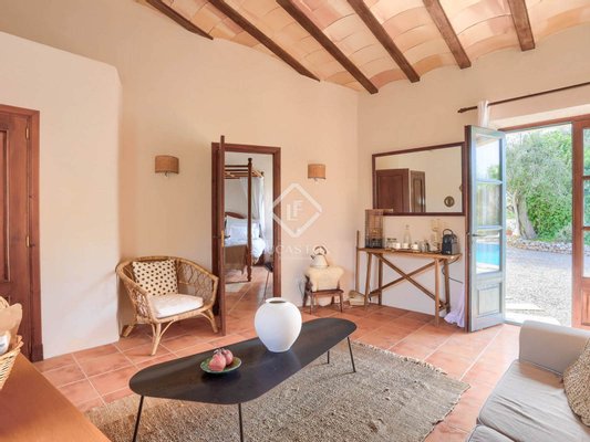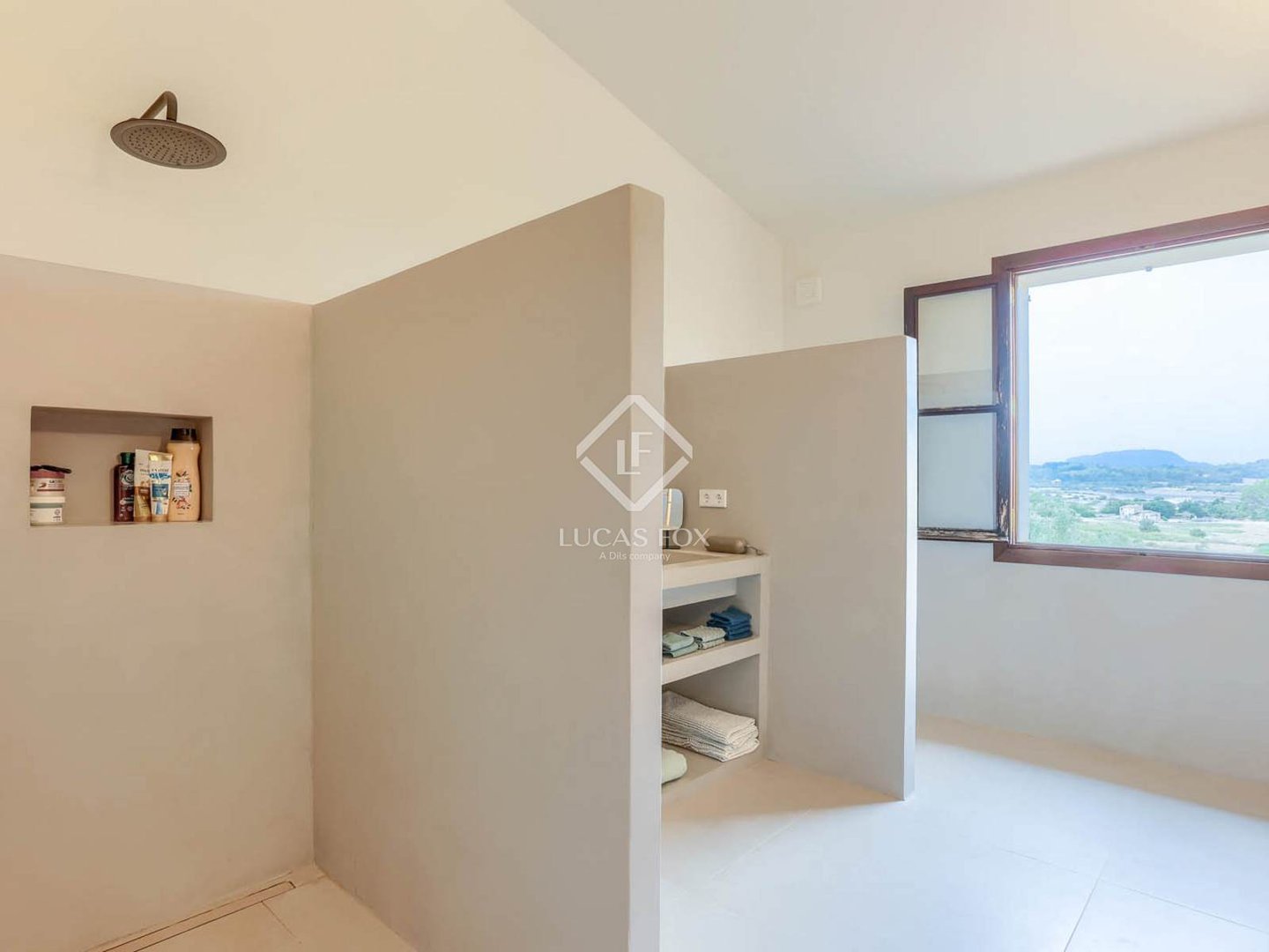 Splendid, fully renovated property offering privacy and breathtaking views of the surrounding nature. A private access road leads to the property, situated in an elevated position, protected from prying eyes. The main house, built on two levels, boasts a spectacular space on the ground floor, thanks to its unusual ceiling height and exposed beams. The kitchen was custom-designed with high-quality materials (natural stone and wood) and equipped with high-end appliances: Bora hob, Gaggenau refrigerator, and Miele appliances. From the central island you can enjoy a unique perspective: on one side, nature and the light that generously penetrates through numerous windows, and then you access the dining room, followed by a spacious and cozy living room with a stone fireplace, and a very comfortable television corner, accompanied by a large library. This first floor is completed by a guest toilet, a technical room, and a large functional laundry room. The upper floor is accessed by a majestic Art Deco-style staircase, where there are two bedrooms with custom-made dressing rooms, a complete bathroom with toilet, and a huge master suite with a large dressing room, all connected to a micro-cement bathroom with shower, bathtub and toilet. All rooms are equipped with air conditioning and ceiling fans. From the living room you have access to a covered terrace offering breathtaking views of the countryside and olive trees. The 14,587 m² plot features a large 100 m² garage with space for three cars and three guest houses. A uniquely sized heated saltwater pool (6x12 m) creates an idyllic and relaxing atmosphere, surrounded by pleasant relaxation areas and lush Mediterranean vegetation. The small houses offer four additional bedrooms with private bathrooms and several other possible uses. The estate is equipped with new solar panels and new lithium batteries, making it completely self-sufficient in electricity and water, thanks to its legal well. The entire estate also has gas underfloor heating, guaranteeing optimal comfort all year round. This unique property offers all the advantages for year-round living, just minutes from the access to the Manacor – Palma road and the charming village of Montuïri, with all its services (supermarkets, hardware store, restaurants, pharmacy, post office, doctors, veterinarians), in a peaceful and exceptional environment.