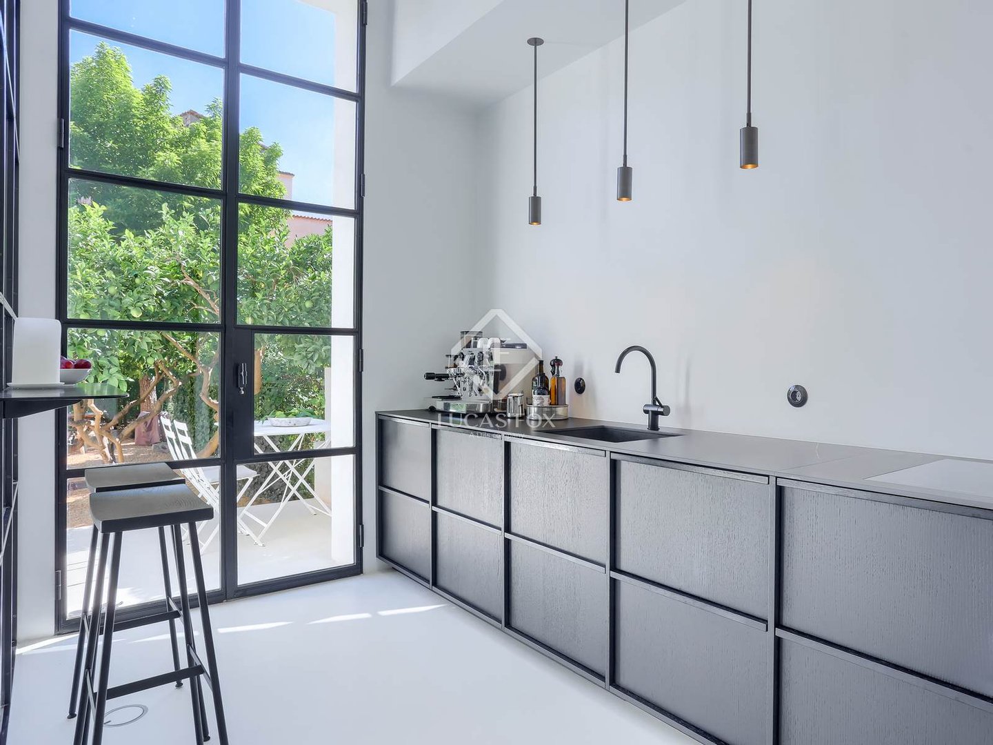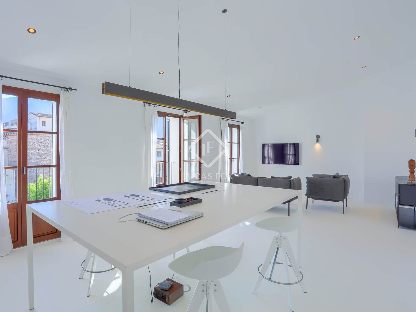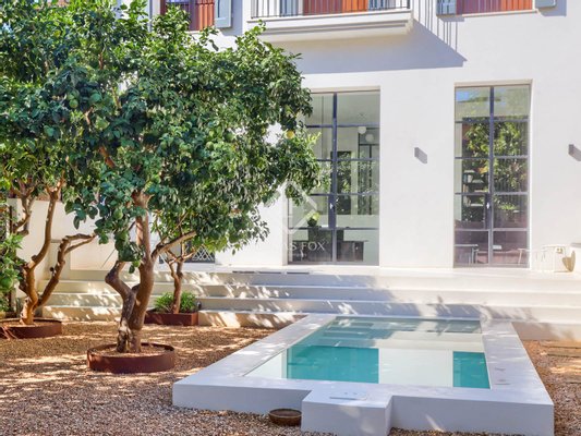 Im Herzen von Sóller, in der schönsten Straße, umgeben vom dramatischen Tramuntana-Gebirge und in mediterranes Licht getaucht, ist ein Stadthaus entstanden, das eine neue Geschichte mallorquinischen Lebens erzählt. Die 2023 fertiggestellte Residenz imitiert nicht die Vergangenheit – sie interpretiert sie neu. Hier koexistieren Tradition und Moderne in perfekter Harmonie und schaffen ein Zuhause, das sich zeitlos und doch unverkennbar zeitgenössisch anfühlt. Sobald Sie den Eingang betreten, überkommt Sie sofort ein Gefühl der Ruhe. Weiße Wände, polierte Mikrozementböden und skulpturale Treppen schaffen einen Rückzugsort, in dem das Licht ungehindert von Raum zu Raum fließt. Jede Oberfläche spiegelt die Philosophie des Minimalismus mit Seele wider – raffiniert, funktional und von dezenter Eleganz. Die Architektur lädt dazu ein, innezuhalten und zu beobachten, wie die Abendsonne mit der Spiegelung spielt oder wie die handgefertigten Eisentüren Schatten werfen, die sich im Tagesverlauf verändern. Dies ist nicht nur ein Haus – es ist ein Erlebnis aus Design und Atmosphäre. Im Zentrum liegt die Küche von Espacio Cocinart, die mit ihren schwarzen Keramikarbeitsplatten und hochmodernen SMEG-Geräten einen starken Kontrast bildet. Es ist ein Raum, der nicht nur zum Kochen, sondern auch zum Zusammensein gedacht ist – eine Kulisse für Gespräche, Lachen und gemeinsame Mahlzeiten. Der Esstisch von Riva1920 wird zur Bühne für lange Sommerabende mit Freunden. Im Wohnbereich schaffen ein Blasco-Sofa und ein Divani-Tisch mit Holzkamin eine perfekte Ecke zum Nachdenken. Die Beleuchtung von Contain Studio definiert jeden Raum sanft, während die fühlbare Wärme der Tischlerarbeiten von Palmer und der Badezimmer von Vallone die täglichen Routinen zu Ritualen erhebt. Jedes Element wurde mit Bedacht ausgewählt – Gervasoni-Betten für erholsame Nächte, Nordlux-Armaturen für wohnliches Wohlbefinden. Dieses Zuhause ist kuratiert, nicht dekoriert. Draußen geht die Geschichte weiter. Hier, unter Orangen-, Zitronen- und Avocadobäumen, verlangsamt sich das Leben im Rhythmus der Natur. Ein türkisgrüner Pool schimmert in der Sonne und lädt zum morgendlichen Schwimmen oder zum spätnachmittaglichen Bad ein. Am Ende des Tages fangen die Berge das letzte goldene Licht ein und reflektieren es über das Wasser zurück ins Haus – ein tägliches Theater aus Farbe und Stille. Obwohl jedes Detail perfekt wirkt, ist das Design zukunftsweisend. Das Dachgeschoss wurde sorgfältig für eine zusätzliche Küche und ein zusätzliches Bad vorbereitet und bietet die Flexibilität, ein separates Gästeapartment oder Studio zu schaffen. Diese Anpassungsfähigkeit stellt sicher, dass das Haus mit Ihren Bedürfnissen wächst, sei es als Familiendomizil, saisonaler Rückzugsort oder Lifestyle-Investition. Das Haus verfügt über ein Daikin-Aerotermia-System für eine energieeffiziente und nachhaltige Klimaregelung über Ihr Mobiltelefon. Dieses Stadthaus ist mehr als nur Wände und Oberflächen – es fängt die Essenz von Sóller ein: eine Stadt, in der die Geschichte durch die gepflasterten Straßen atmet, Innovation jedoch in der zeitgenössischen Architektur Ausdruck findet. Es ist für diejenigen, die Ruhe ohne Isolation, Design ohne Kompromisse und Natur schätzen, ohne auf den Komfort des Zuhauses zu verzichten. Eine seltene Gelegenheit auf dem Immobilienmarkt von Sóller. Planen Sie noch heute Ihre private Besichtigung und beginnen Sie Ihr eigenes Kapitel in dieser Geschichte des mediterranen Lebens.
