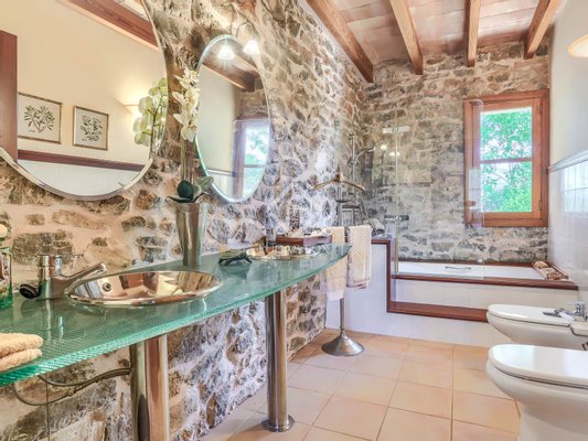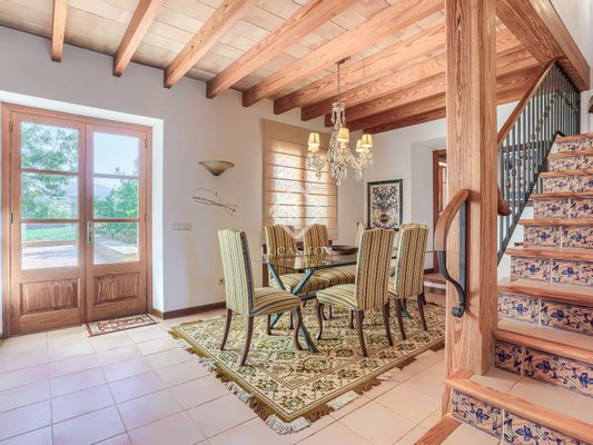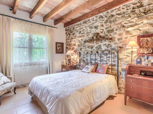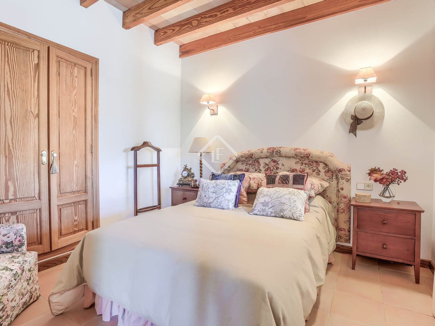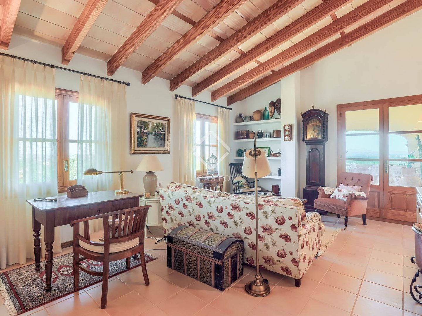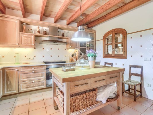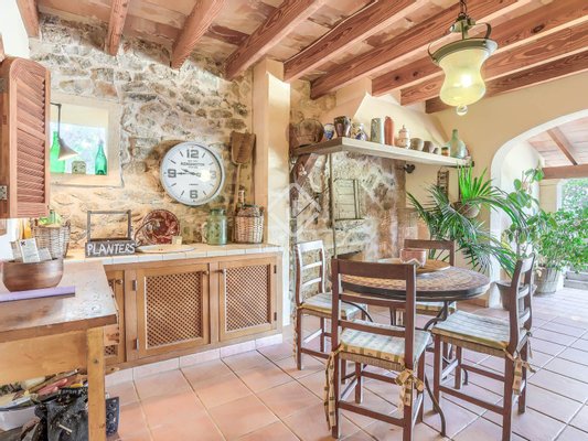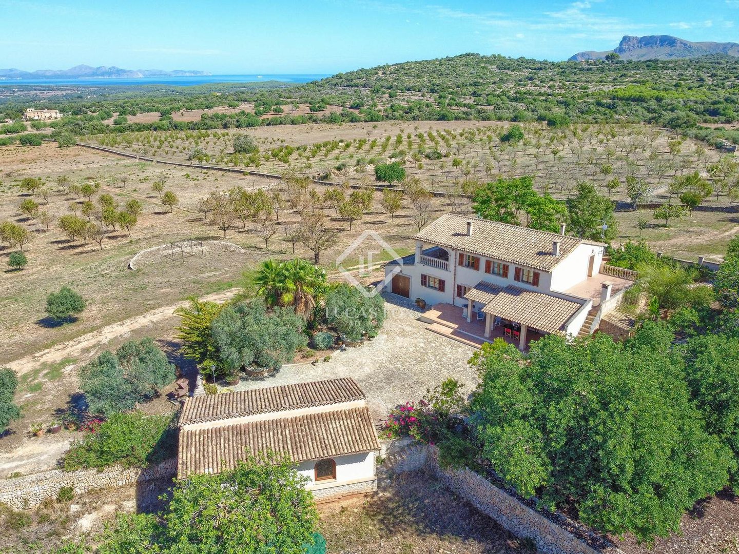 Eingebettet zwischen Manacor und Colònia de Sant Pere erstreckt sich dieses außergewöhnliche landwirtschaftliche Anwesen über mehr als 25 Hektar und bietet eine einzigartige Umgebung, die Authentizität, Natur und modernen Komfort vereint. Das Haupthaus, das aus der Zeit vor 1956 stammt und 2002 komplett renoviert wurde, bietet knapp 370 m² Wohnfläche. Es erstreckt sich über zwei Etagen und bietet auf der ersten Ebene ein Wohnzimmer, ein Esszimmer, eine voll ausgestattete Küche mit Zugang zu einer überdachten Sommerküche, 3 Schlafzimmer und zwei Badezimmer. Im Obergeschoss erwartet Sie ein zweites gemütliches Wohnzimmer mit Zugang zu einer überdachten Terrasse mit atemberaubendem Blick auf das Meer und die Tramuntana. Ein großes Schlafzimmer mit großem Ankleidezimmer, ein Badezimmer und eine Waschküche vervollständigen diese Ebene. Das Haus wird durch zwei eingetragene Nebengebäude vervollständigt, eines für die landwirtschaftliche Lagerung und das andere, ausgestattet für Solaranlagen und den Generator, das in eine Wohnung umgebaut werden könnte. Dank seiner 14 Solarmodule, seines Generators und seines 220 Meter tiefen Brunnens, der 3.600 l/h fördern darf, ist die Finca völlig autark in Bezug auf Wasser und Energie. Der Hof, der bereits für mallorquinische Mandeln mit der g.g.A.-Zertifizierung ausgezeichnet ist, verfügt über mehr als 1.700 Mandelbäume sowie Johannisbrot-, Feigen- und Olivenbäume. Ein modernes Tropfbewässerungssystem, mehrere Zisternen und Land, das für neue Pflanzungen oder sogar Pferdehaltung bereitsteht, runden das Potenzial des Hofes ab. Das Anwesen liegt auf einer Höhe von 185 m und bietet einen spektakulären Panoramablick auf die Bucht von Alcúdia, das Kap Formentor und das Tramuntana-Gebirge. Umgeben von Naturschutzgebieten und in der Nähe des Naturparks Llevant garantiert es Privatsphäre und Ruhe und ist gleichzeitig nur 45 Minuten vom Flughafen und 15 Minuten von Stränden, malerischen Dörfern und Kulturzentren entfernt. Für das Grundstück wurde gerade die Aufteilungsvereinbarung für den Bau einer 900 m3 großen Villa sowie die Genehmigung für den Bau eines Swimmingpools erteilt. Eine seltene Lage, ideal für die Kombination eines charmanten Wohnsitzes, eines landwirtschaftlichen Projekts und einer Investition in das Kulturerbe. Komplette Datei auf Anfrage.