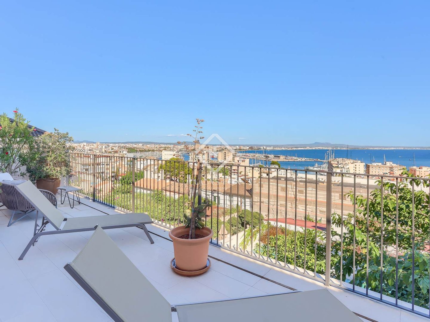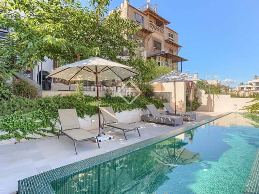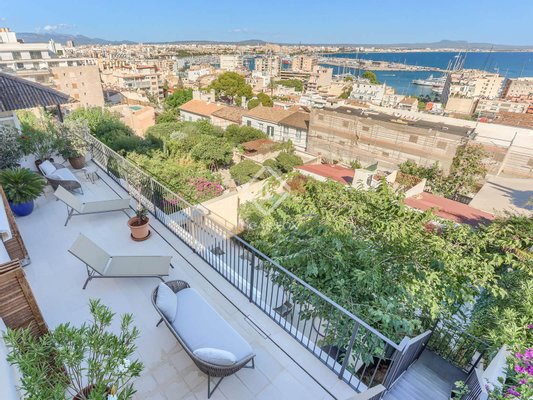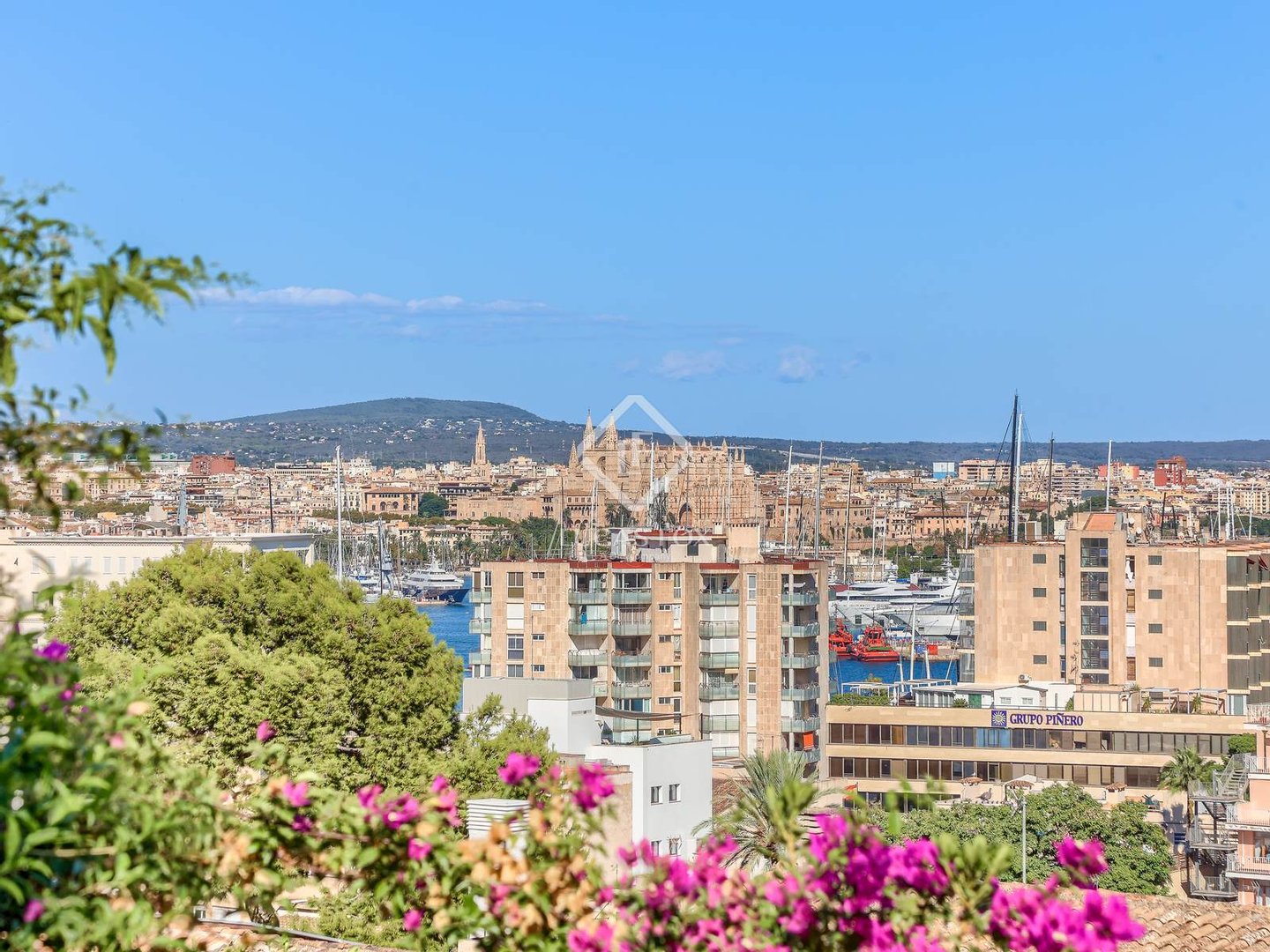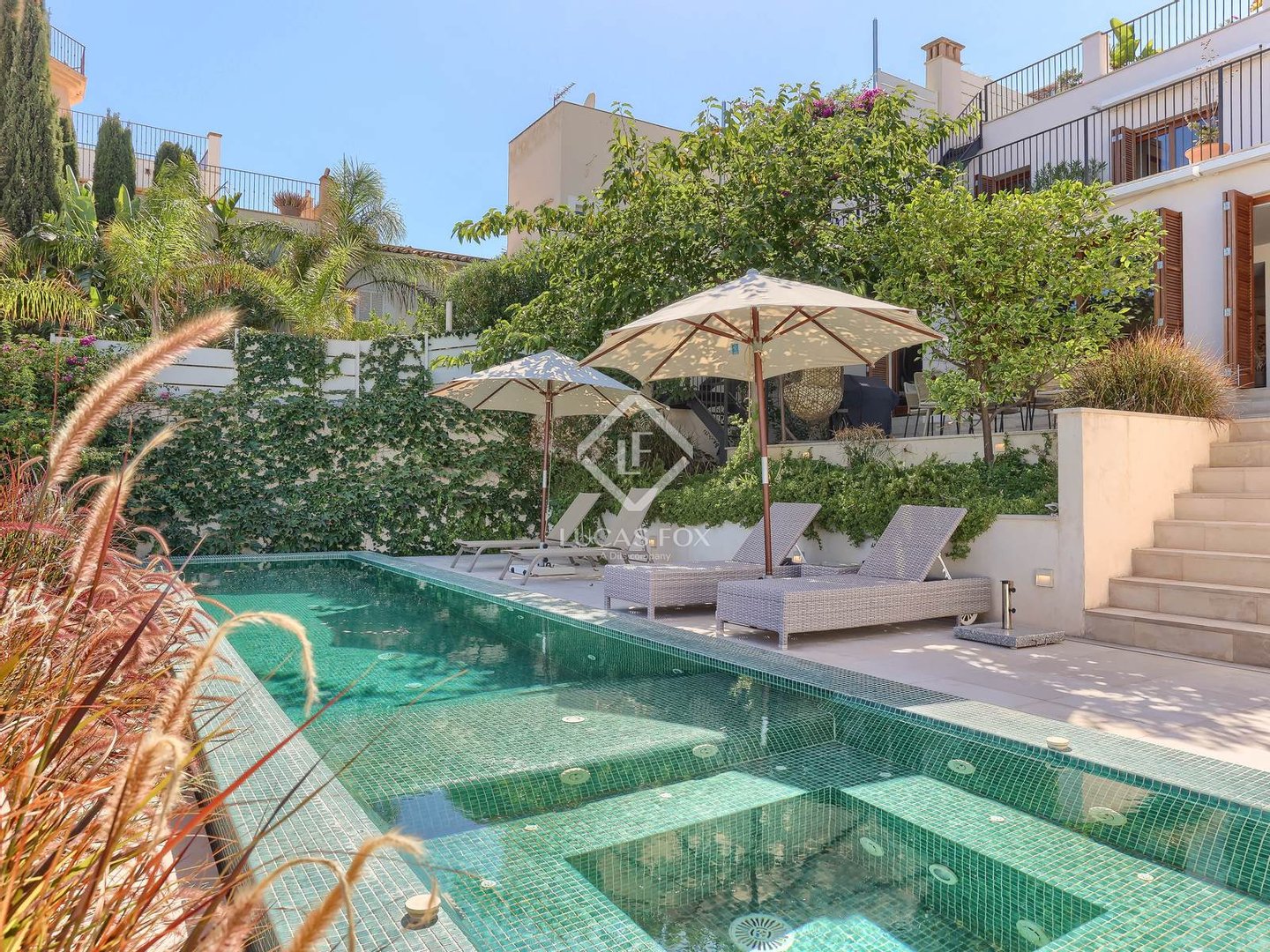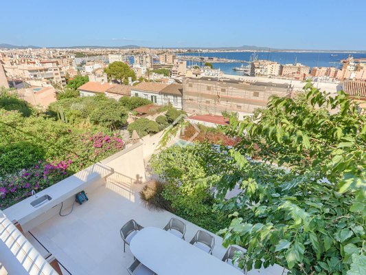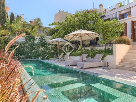 Lucas Fox Mallorca präsentiert diese exklusive Villa mit Panoramablick in El Terreno, Palma Eingebettet in die Hügel von El Terreno, einem der unkonventionellsten und begehrtesten Viertel von Palma de Mallorca, vereint diese außergewöhnliche Villa mediterrane Eleganz, erstklassige Annehmlichkeiten und eine spektakuläre Aussicht. Das dreistöckige Anwesen besticht durch viel Tageslicht, die hervorragende Lage und die großen Erkerfenster, die einen einzigartigen Panoramablick auf die Stadt, die Kathedrale und den Hafen von Palma bieten. Die Atmosphäre ist friedlich und zugleich mit dem geschäftigen Treiben der Stadt verbunden. Das Haus verfügt über eine Touristenlizenz, ein seltener Vorteil, der eine legale Vermietung ermöglicht und ideal ist, um persönliches Vergnügen und Rentabilität zu verbinden. Im Erdgeschoss führt der Eingang zu einem geräumigen, hellen Wohnzimmer und einer voll ausgestatteten, modernen Küche, die auf eine einladende Terrasse führt. Der sorgfältig angelegte Außenbereich lädt zum Entspannen rund um den Pool mit integriertem Whirlpool ein. Im Obergeschoss bieten drei elegante Schlafzimmer, jedes mit eigenem Bad, Ankleidezimmer und Zugang zu einer individuellen Terrasse, optimalen Komfort und unvergessliche Sonnenaufgänge. Das oberste Stockwerk verfügt über eine spektakuläre 55 m² große Terrasse, auf der Sie in absoluter Privatsphäre die Sonne genießen und dabei einen atemberaubenden Blick auf die Bucht von Palma genießen können. Eine private Garage, die unmittelbare Nähe zu Stränden, Jachthäfen, internationalen Schulen, renommierten Golfplätzen und dem historischen Zentrum von Palma – nur wenige Gehminuten entfernt – runden dieses seltene und begehrte Anwesen ab, das nur 15 Minuten vom Flughafen entfernt liegt. Ein kultivierter Zufluchtsort abseits des sommerlichen Trubels in einem Viertel, das gerade eine Renaissance erlebt, um Mallorca in seiner ganzen Pracht zu erleben.