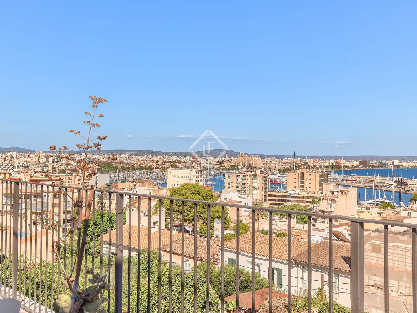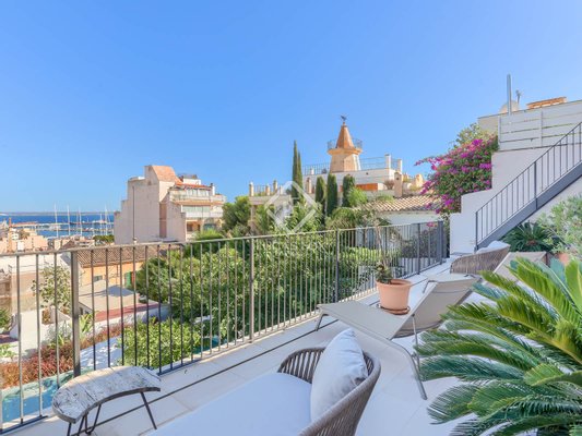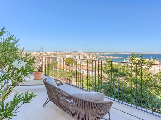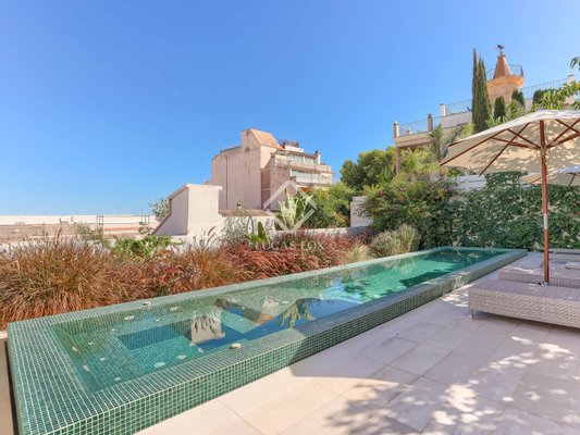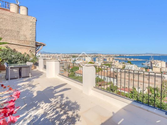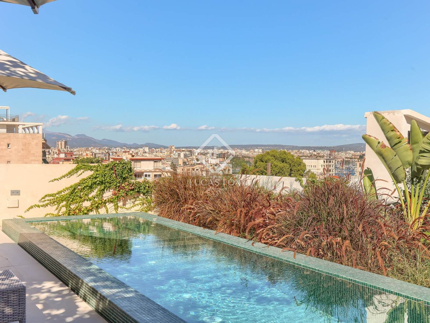 Lucas Fox Mallorca präsentiert diese exklusive Villa mit Panoramablick in El Terreno, Palma Eingebettet in die Hügel von El Terreno, einem der unkonventionellsten und begehrtesten Viertel von Palma de Mallorca, vereint diese außergewöhnliche Villa mediterrane Eleganz, erstklassige Annehmlichkeiten und eine spektakuläre Aussicht. Das dreistöckige Anwesen besticht durch viel Tageslicht, die hervorragende Lage und die großen Erkerfenster, die einen einzigartigen Panoramablick auf die Stadt, die Kathedrale und den Hafen von Palma bieten. Die Atmosphäre ist friedlich und zugleich mit dem geschäftigen Treiben der Stadt verbunden. Das Haus verfügt über eine Touristenlizenz, ein seltener Vorteil, der eine legale Vermietung ermöglicht und ideal ist, um persönliches Vergnügen und Rentabilität zu verbinden. Im Erdgeschoss führt der Eingang zu einem geräumigen, hellen Wohnzimmer und einer voll ausgestatteten, modernen Küche, die auf eine einladende Terrasse führt. Der sorgfältig angelegte Außenbereich lädt zum Entspannen rund um den Pool mit integriertem Whirlpool ein. Im Obergeschoss bieten drei elegante Schlafzimmer, jedes mit eigenem Bad, Ankleidezimmer und Zugang zu einer individuellen Terrasse, optimalen Komfort und unvergessliche Sonnenaufgänge. Das oberste Stockwerk verfügt über eine spektakuläre 55 m² große Terrasse, auf der Sie in absoluter Privatsphäre die Sonne genießen und dabei einen atemberaubenden Blick auf die Bucht von Palma genießen können. Eine private Garage, die unmittelbare Nähe zu Stränden, Jachthäfen, internationalen Schulen, renommierten Golfplätzen und dem historischen Zentrum von Palma – nur wenige Gehminuten entfernt – runden dieses seltene und begehrte Anwesen ab, das nur 15 Minuten vom Flughafen entfernt liegt. Ein kultivierter Zufluchtsort abseits des sommerlichen Trubels in einem Viertel, das gerade eine Renaissance erlebt, um Mallorca in seiner ganzen Pracht zu erleben.