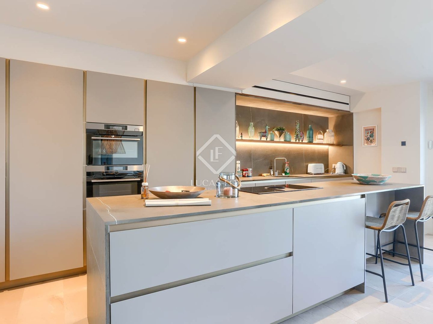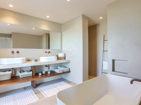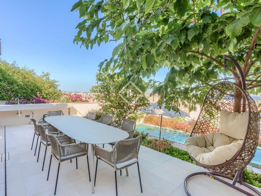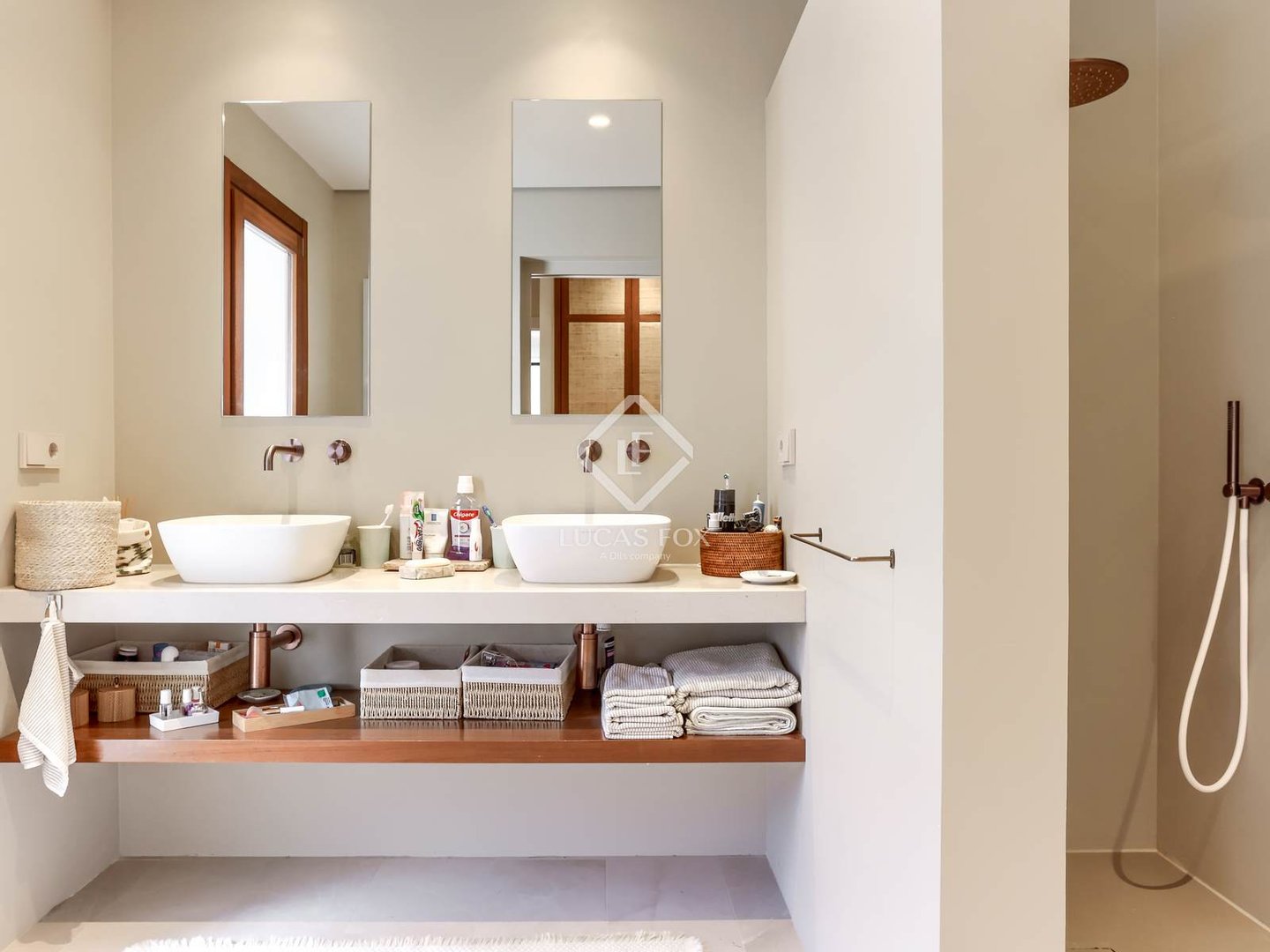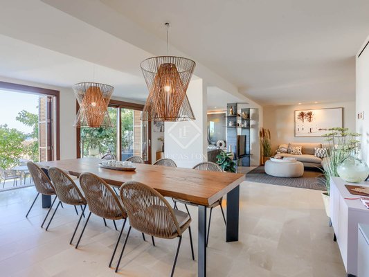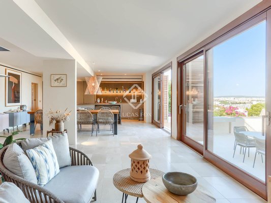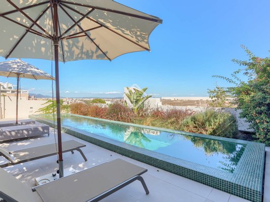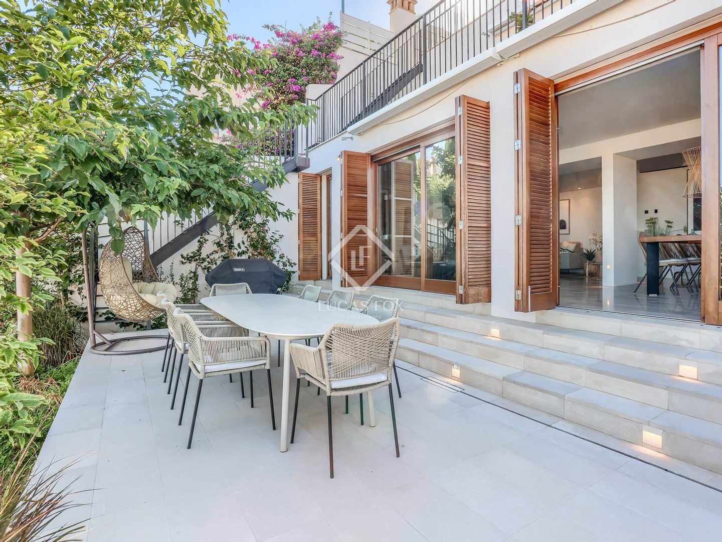 Lucas Fox Mallorca präsentiert diese exklusive Villa mit Panoramablick in El Terreno, Palma Eingebettet in die Hügel von El Terreno, einem der unkonventionellsten und begehrtesten Viertel von Palma de Mallorca, vereint diese außergewöhnliche Villa mediterrane Eleganz, erstklassige Annehmlichkeiten und eine spektakuläre Aussicht. Das dreistöckige Anwesen besticht durch viel Tageslicht, die hervorragende Lage und die großen Erkerfenster, die einen einzigartigen Panoramablick auf die Stadt, die Kathedrale und den Hafen von Palma bieten. Die Atmosphäre ist friedlich und zugleich mit dem geschäftigen Treiben der Stadt verbunden. Das Haus verfügt über eine Touristenlizenz, ein seltener Vorteil, der eine legale Vermietung ermöglicht und ideal ist, um persönliches Vergnügen und Rentabilität zu verbinden. Im Erdgeschoss führt der Eingang zu einem geräumigen, hellen Wohnzimmer und einer voll ausgestatteten, modernen Küche, die auf eine einladende Terrasse führt. Der sorgfältig angelegte Außenbereich lädt zum Entspannen rund um den Pool mit integriertem Whirlpool ein. Im Obergeschoss bieten drei elegante Schlafzimmer, jedes mit eigenem Bad, Ankleidezimmer und Zugang zu einer individuellen Terrasse, optimalen Komfort und unvergessliche Sonnenaufgänge. Das oberste Stockwerk verfügt über eine spektakuläre 55 m² große Terrasse, auf der Sie in absoluter Privatsphäre die Sonne genießen und dabei einen atemberaubenden Blick auf die Bucht von Palma genießen können. Eine private Garage, die unmittelbare Nähe zu Stränden, Jachthäfen, internationalen Schulen, renommierten Golfplätzen und dem historischen Zentrum von Palma – nur wenige Gehminuten entfernt – runden dieses seltene und begehrte Anwesen ab, das nur 15 Minuten vom Flughafen entfernt liegt. Ein kultivierter Zufluchtsort abseits des sommerlichen Trubels in einem Viertel, das gerade eine Renaissance erlebt, um Mallorca in seiner ganzen Pracht zu erleben.