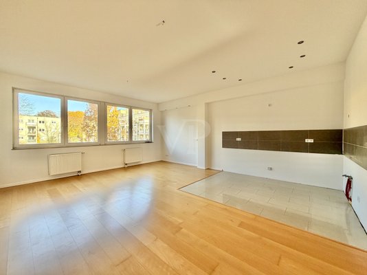 Das Herzstück der Wohnung ist das etwa 34 m² große, lichtdurchflutete Wohnzimmer, in welchem Platz für Ihre individuelle Traumküche vorhanden ist. Hier können Sie Ihre Vorstellungen verwirklichen – ob modern-minimalistisch, gemütlich und wohnlich oder extravagant – und so den Mittelpunkt des Wohnens nach Ihren ganz persönlichen Wünschen gestalten.