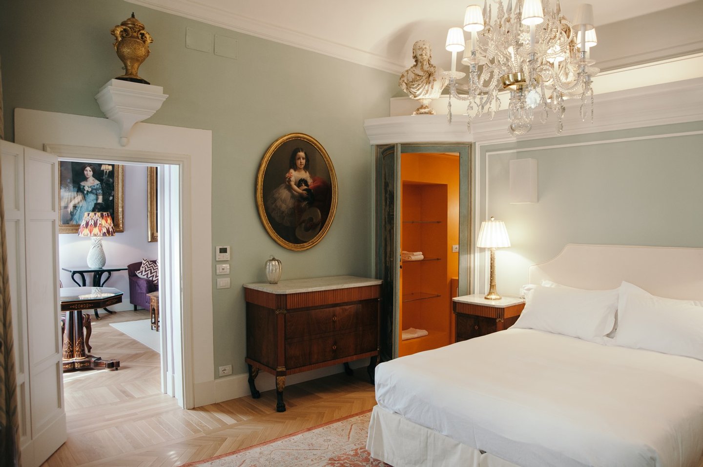 Die Wohnung wurde von den jetzigen Eigentümern sorgfältig restauriert und bietet ein ruhiges Zuhause im zweiten Stock mit Aufzug.