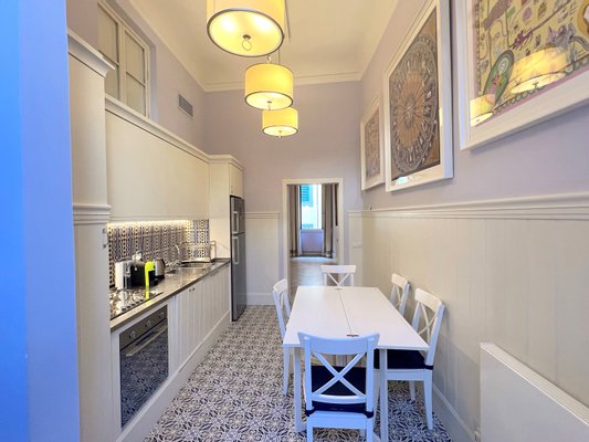 Diese charmante und elegante Wohnung in einem hübschen Palazzo befindet sich im Viertel Oltrarno südlich des Flusses Arno in Florenz. Nur einen kurzen Spaziergang vom Palazzo Pitti, der Ponte Vecchio und dem Santo Spirito-Platz mit seinen saisonalen