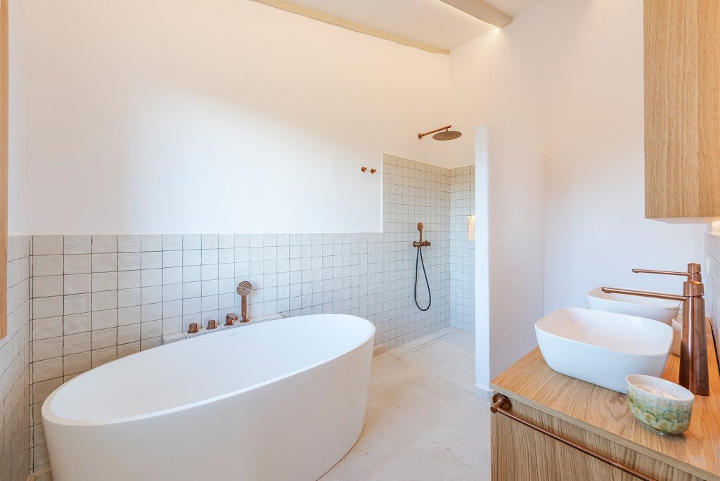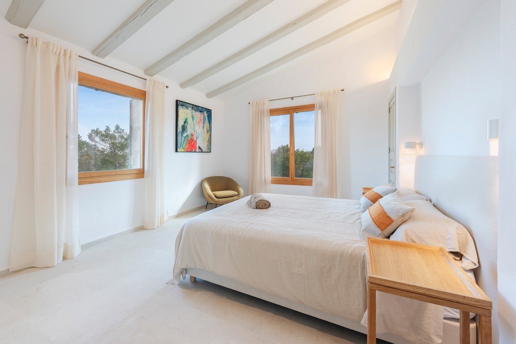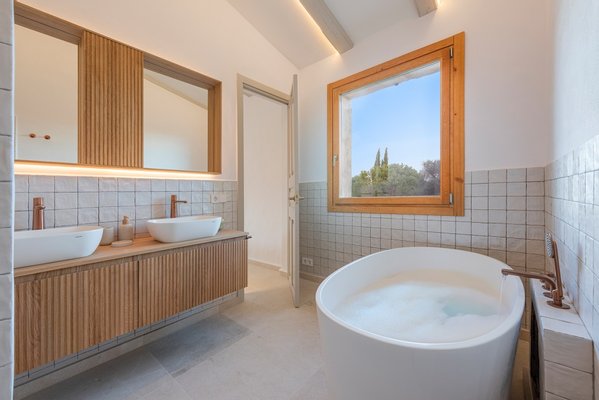 Im Inneren bietet die Villa Fußbodenheizung im gesamten Haus sowie Klimaanlage (warm/kalt). Im Obergeschoss befinden sich drei Hauptsuiten mit atemberaubendem Blick auf die umliegende Berglandschaft sowie zwei weitere Doppelschlafzimmer, die sich ein Badezimmer teilen.