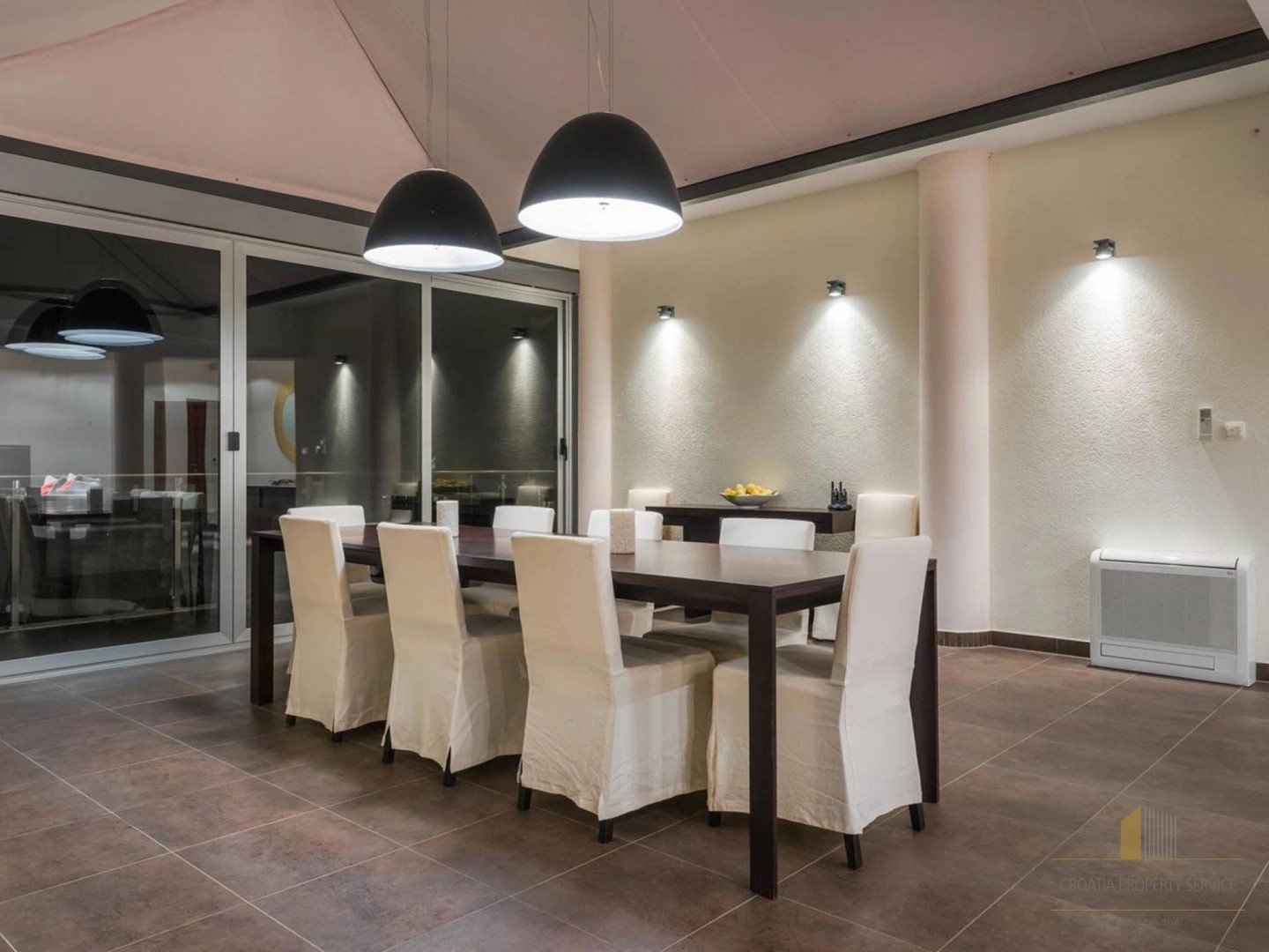 Die Villa bietet 520 m2 Nettowohnfläche und mehr als 1.400 m2 Bruttogesamtfläche mit großzügigen Terrassen, die die perfekte Balance zwischen Komfort, Privatsphäre und spektakulären Ausblicken auf die Adria schaffen.