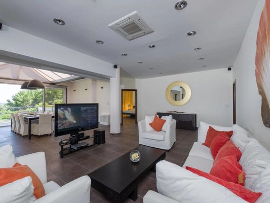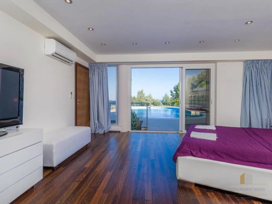 Die Villa verfügt außerdem über einen privaten Parkplatz, eine Garage für zwei Autos und einen eigenen Bootsanleger für Schiffe bis zu 35 Meter, was sie zur perfekten Wahl für Liebhaber des Meeres und der Nautik macht.