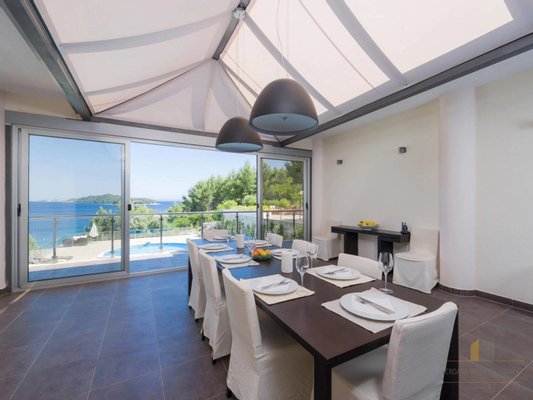 Stolz präsentieren wir eine außergewöhnliche Villa, gelegen in erster Meereslinie auf einer der schönsten Adriainseln – Korčula, bekannt für das türkisfarbene Meer, jahrhundertealte Olivenhaine und unberührte Natur.