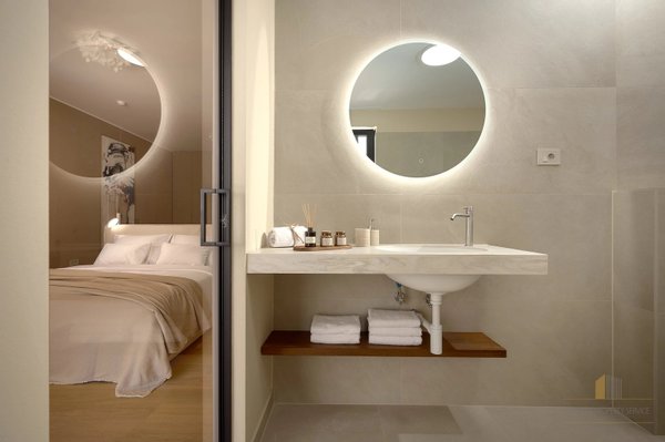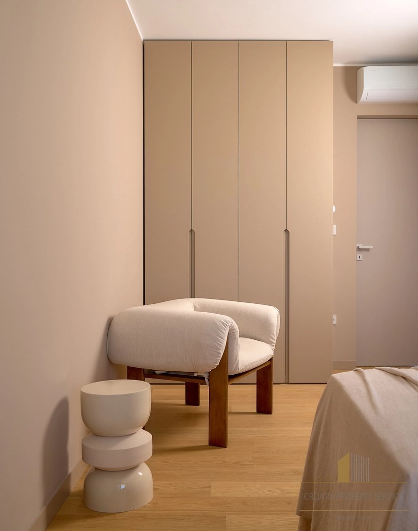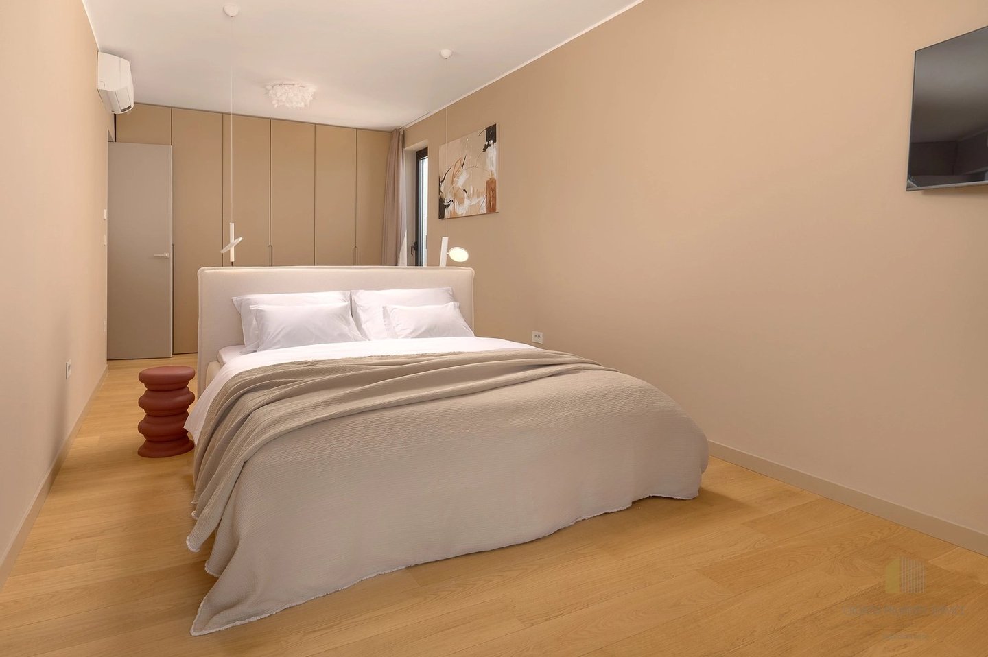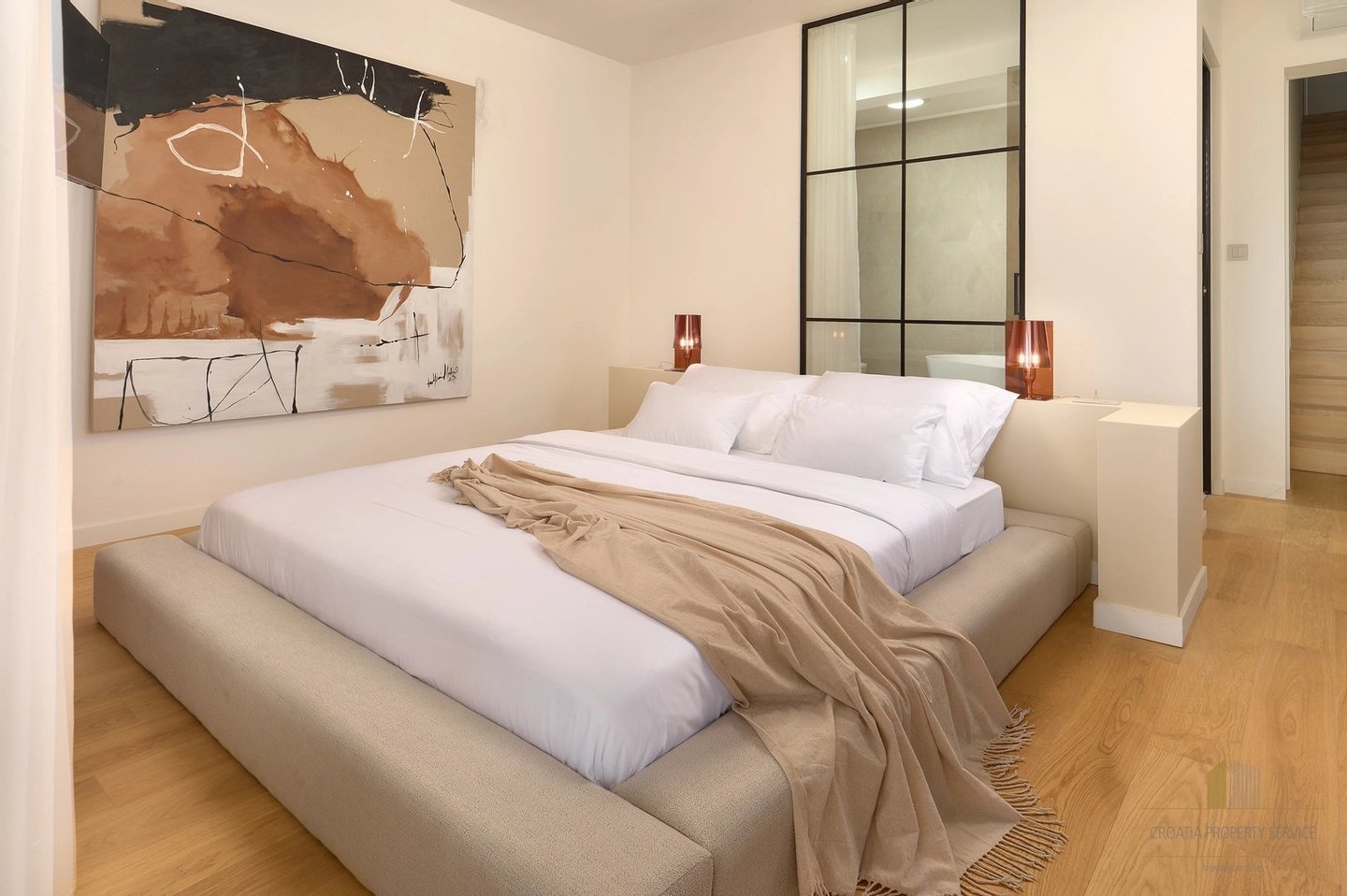 Im zweiten Stock befinden sich vier elegante Schlafzimmer, jeweils mit eigenem Badezimmer und privatem Balkon, was maximalen Komfort und Privatsphäre garantiert.