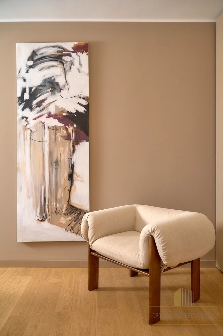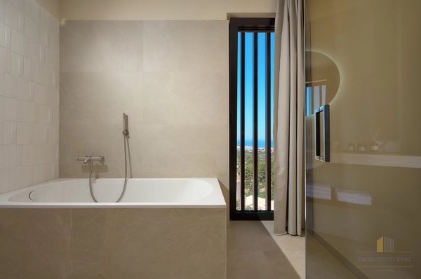 Hervorragende Eigenschaften und Premiumausstattung: elegantes Design mit sorgfältig ausgewählten italienischen Möbeln, Fußbodenheizung im gesamten Haus und modernste Wind-Free Samsung Klimaanlagen, elektrische Jalousien (Hella) zum Sonnenschutz in der Küche und im Wohnzimmer, Aluminiumfenster und ein beheizter Infinity-Pool, integriertes Soundsystem (innen und außen), italienische Designerbeleuchtung (Luceplan, Deltalight), Videoüberwachung und Bewässerungssystem.