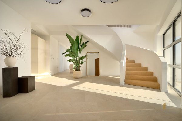 Diese einzigartige Residenz erstreckt sich über ca. 490 m2 Wohnfläche, gelegen auf einem 1100 m2 großen Grundstück, und verteilt sich auf drei Ebenen: Erdgeschoss, erster und zweiter Stock.