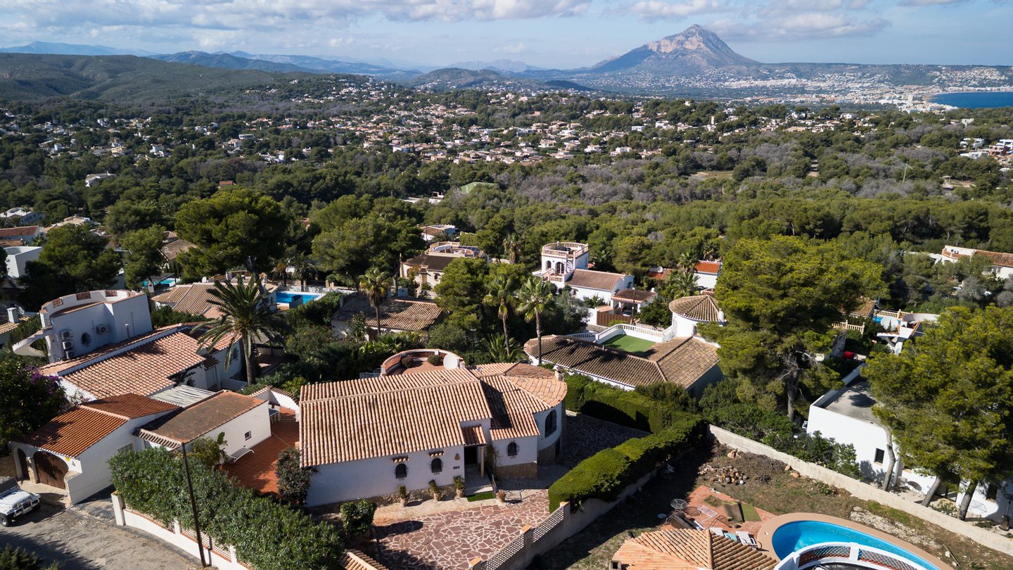Traditionelles Haus im Stil der 1980er-Jahre mit Blick auf den Montgó, gelegen im ruhigen Wohngebiet Balcón al Mar in Jávea (Alicante) Spanien.