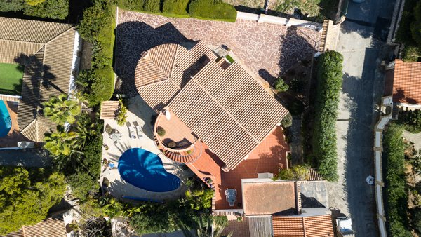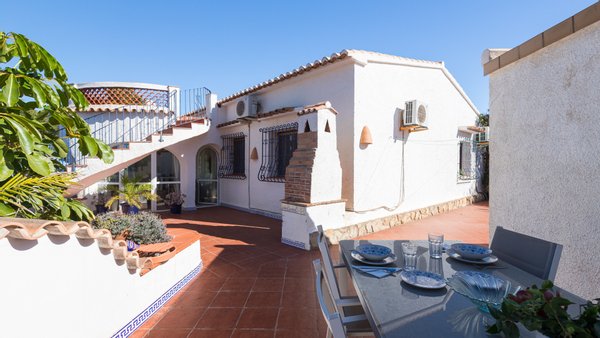 Traditionelles Haus im Stil der 1980er-Jahre mit Blick auf den Montgó, gelegen im ruhigen Wohngebiet Balcón al Mar in Jávea (Alicante) Spanien.